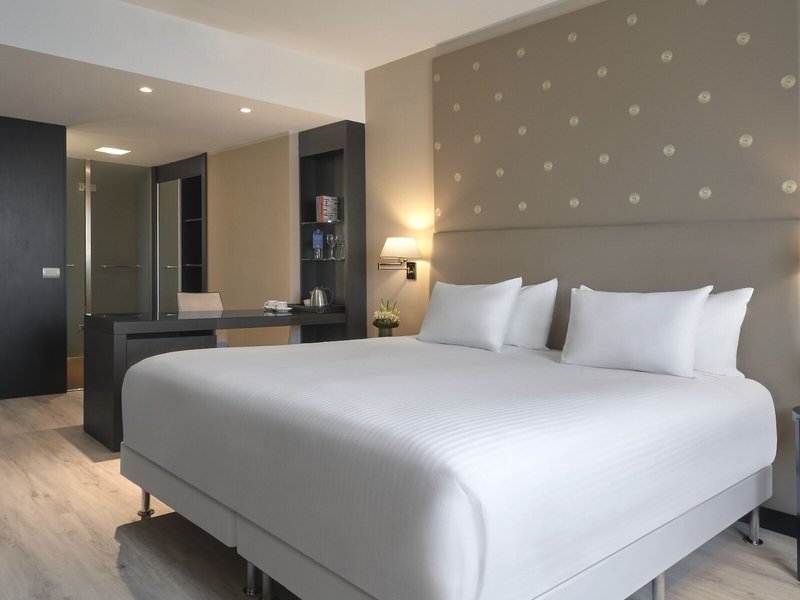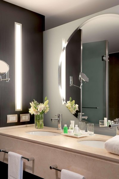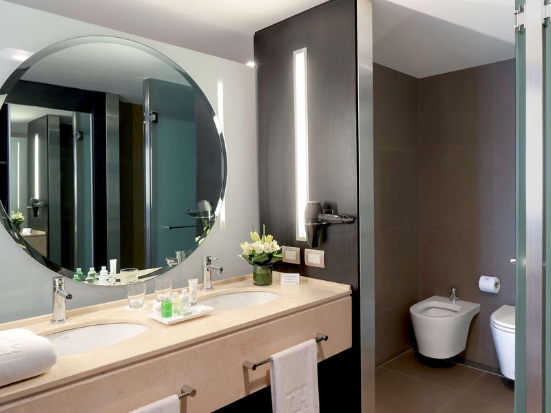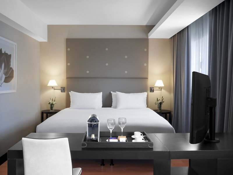 So wohnen Sie: In den Zimmern gibt es eine Klimaanlage und eine Heizung. Die Zimmer verfügen über ein Doppelbett oder ein Kingsize-Bett. Zustellbetten können angefordert werden. Außerdem sind ein Safe, eine Minibar und ein Schreibtisch verfügbar. Auch ein Minikühlschrank und eine Tee-/Kaffeemaschine sind vorhanden. Darüber hinaus sind ein Telefon mit Direktwahl, ein TV-Gerät mit Satelliten-/Kabelempfang und WiFi (ohne Gebühr) vorhanden. Die Badezimmer sind ausgestattet mit einer Dusche, einer Badewanne und einem Bidet. Für den täglichen Gebrauch stehen ein Haartrockner und Bademäntel zur Verfügung. Als Besonderheit genießen die Gäste in den Badezimmern Kosmetikartikel und eine Auswahl an Handtüchern. Außerdem sind rollstuhlgerechte Zimmer mit barrierefreiem Badezimmer buchbar. Das Hotel bietet Nichtraucherzimmer.
