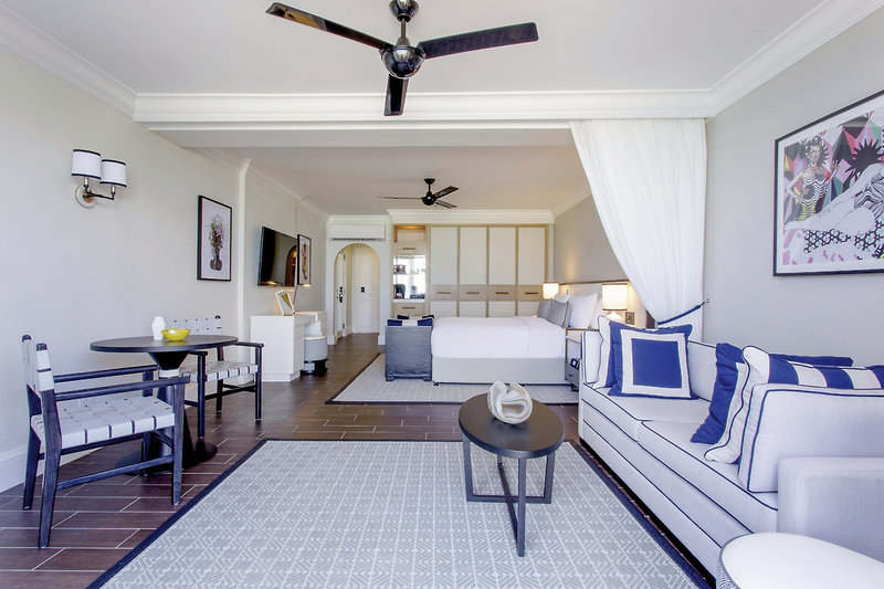- 51-60 qm, Suite, Erdgeschoss, Strandlage, Meerblick, Dusche, Badewanne, Regendusche, WC, Bademantel, Haartrockner, Klimaanlage, Ventilator, Minibar, Safe, Bügelbrett, Bügeleisen, TV, DVD-Player, Musikanlage, Kaffee/Tee, Terrasse (möbliert), direkter Strandzugang, Butlerservice, nachmittags Kaffee/Tee und Gebäck, Snacks am Abend, Flughafentransfer