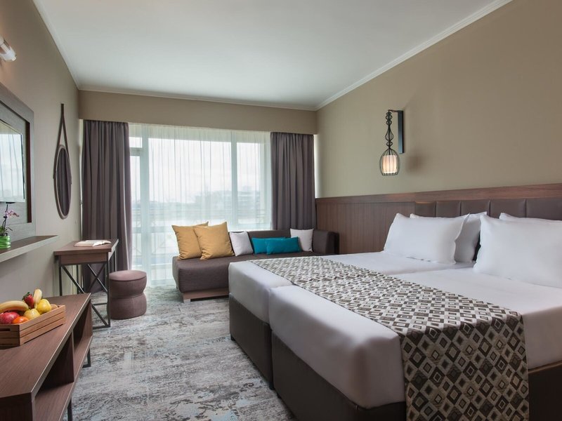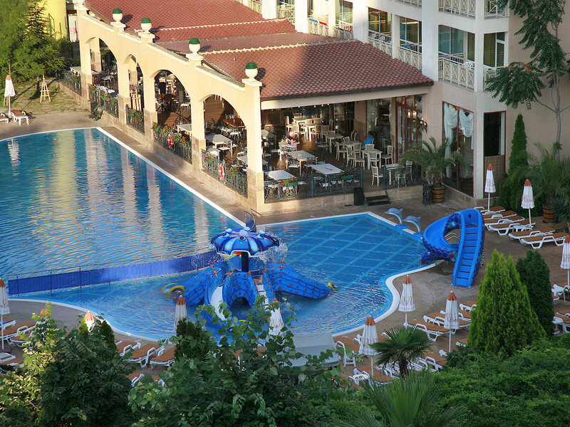 Poloha a okolie Priamo pred hotelom je zastávka panoramatického vlaku, ktorý premáva do rôznych destinácií v letovisku a do starého mesta Nessebar, ktoré je od hotela vzdialené cca 2 km. V bezprostrednej blízkosti nájdete rôzne obchody, reštaurácie, bary a kaviarne. Kakaová pláž a aquapark na Slnečnom pobreží sú vzdialené približne 15 až 20 minút chôdze. Letisko Burgas je vzdialené približne 30 km. Čas prenosu: cca 70 minút.