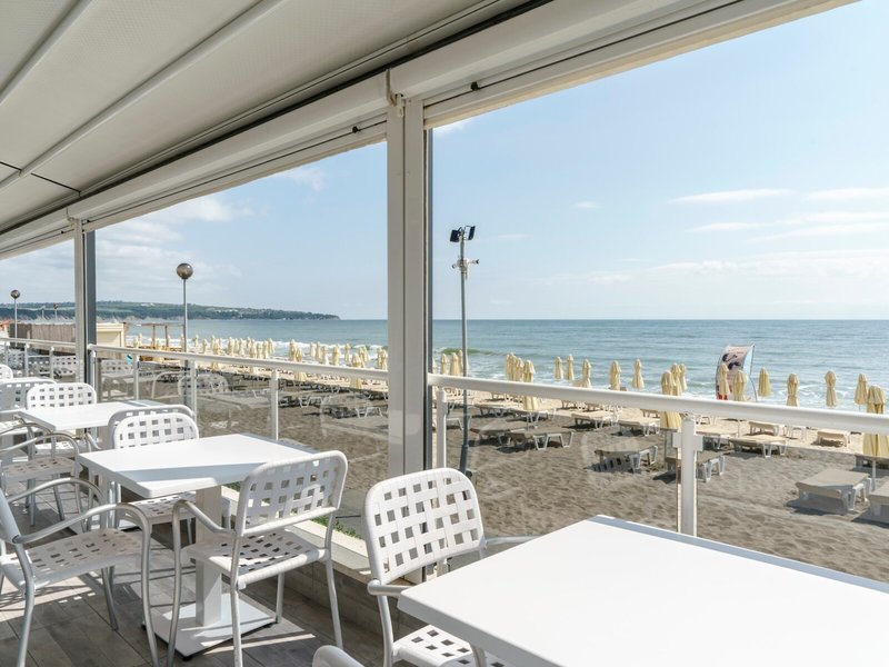 - Pláž: piesočná, mierne sa zvažujúca, ležadlá: za poplatok, slnečníky: za poplatok