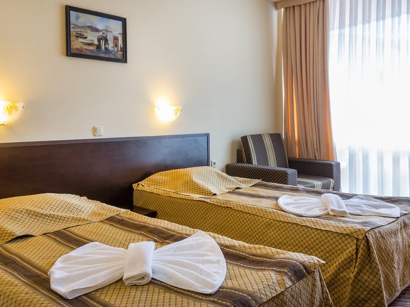 Poloha a okolie Hotel sa nachádza v západnej časti Slnečného pobrežia, asi 400 m od pláže a asi 500 m od centra Slnečného pobrežia. Napojenie na verejnú dopravu, autobusovú stanicu a nákupné možnosti nájdete v bezprostrednej blízkosti. Letisko Burgas je vzdialené približne 35 km.