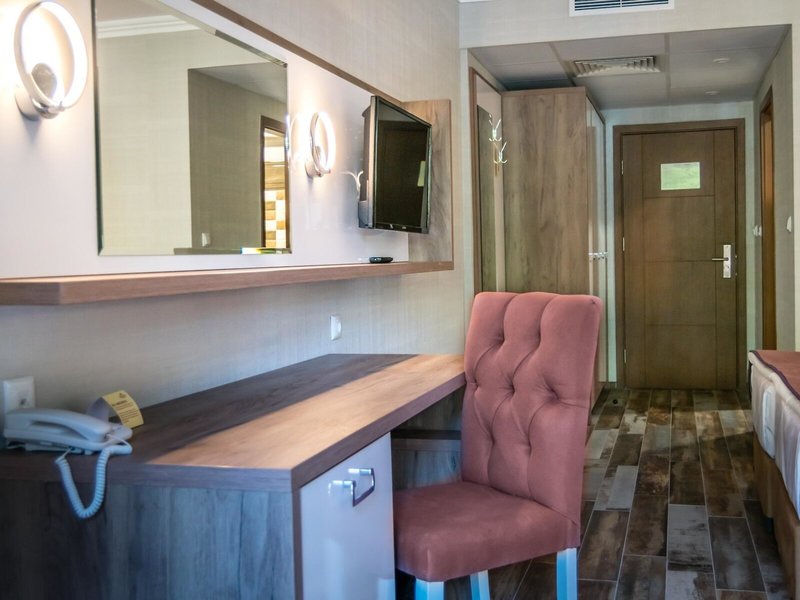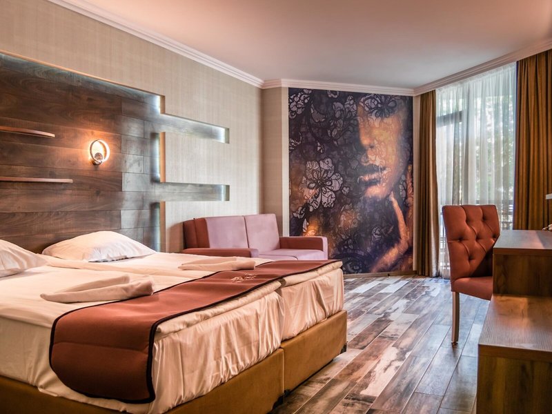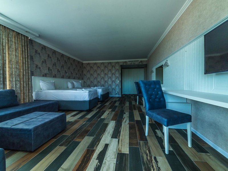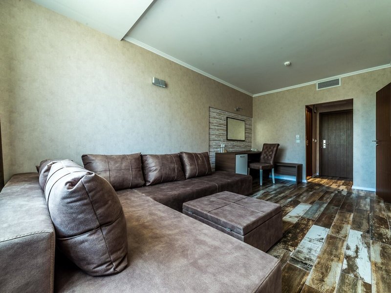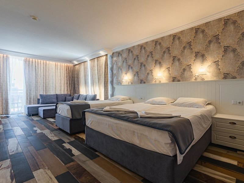 - Suita Junior (JSX1), suita junior, nefajčiarska izba, v hlavnej budove, cca 45 m², posledná kompletná rekonštrukcia v roku 2018, celkový počet izieb v tomto type izby: 1, rozloženie: kombinovaná obývacia izba/spálňa , 2 rozkladacie pohovky (90x200cm), klimatizácia: bez poplatku, individuálne nastaviteľná, podlaha: dlažba, sedačka, telefón, TV: plochá obrazovka, v spálni, upratovanie: 8:00 - 15:00, bez poplatku , sprcha, WC, balkón alebo terasa: s posedením
