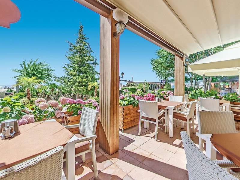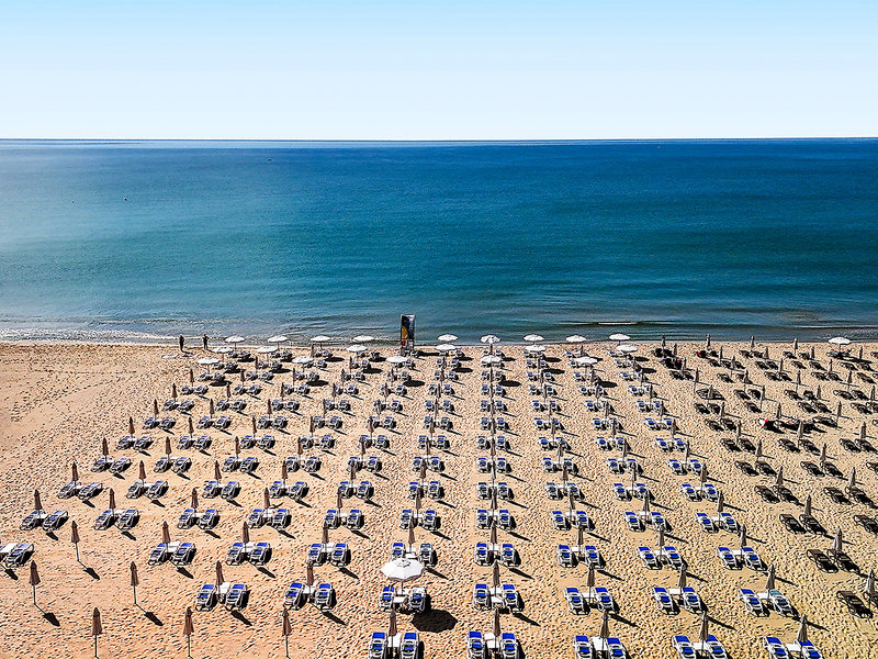 Ausstattung: Das gut geführte Strandhotel verfügt über eine schöne Poollandschaft, Sonnenterrasse, Sonnenliegen und Schirme am Pool (inklusive) sowie am Strand (vom 30.05.-30.09.23, 1 Sonnenschirm u. 2 Liegen pro Zimmer inklusive, nach Verfügbarkeit), Badetücher (gegen Kaution) und Poolbar. Empfangsbereich mit Lobby, Rezeption, Mietsafe, WLAN, Lobbybar, Buffetrestaurant mit Außenterrasse und Blick aufs Meer, À-la-carte-Restaurant (italienische Küche). Landeskategorie: 4 Sterne, 270 Zimmer, 12 Etagen, 4 Lifte.