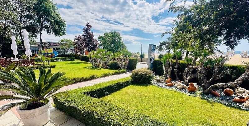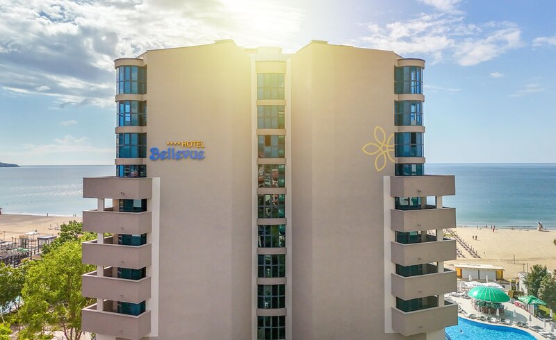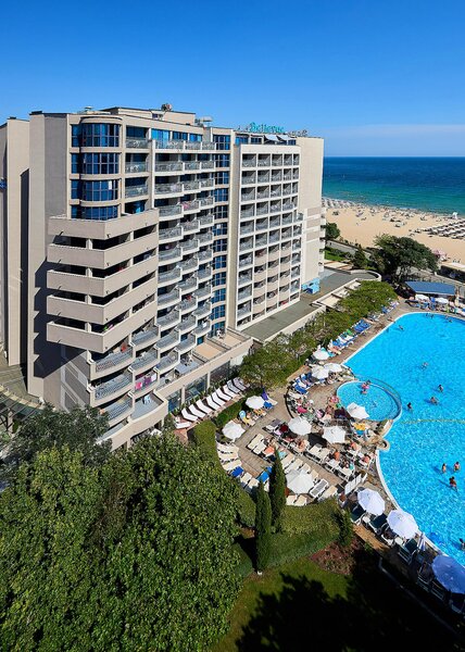 Poloha: V prvom rade, oddelený od kilometrovej piesočnatej pláže len nábrežnou promenádou. V pokojnejšej časti Slnečného pobrežia sa pešo dostanete k mnohým obchodom, reštauráciám a barom. Centrum Slnečného pobrežia je približne 700 m južne od hotela.
