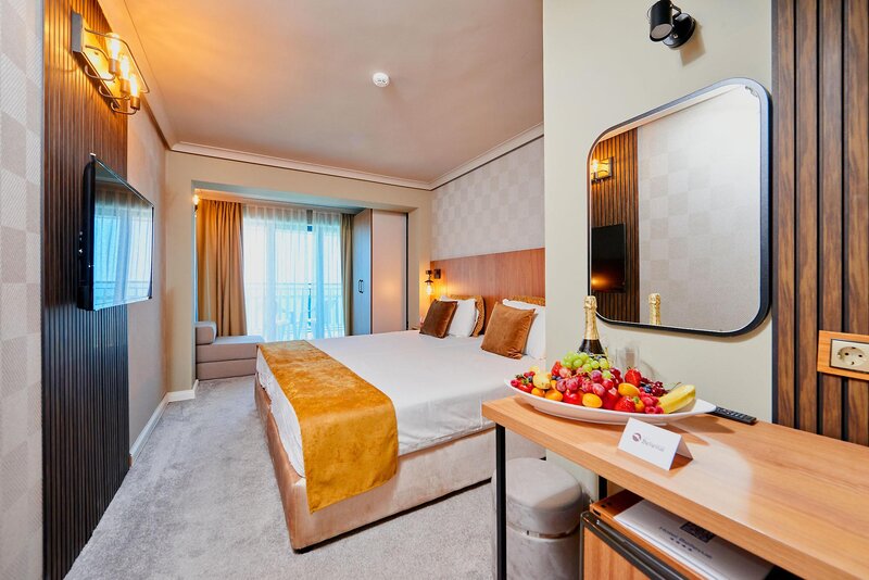 Dvojlôžková izba (GO, zrekonštruovaná, cca 22 m²), klimatizácia, minibar (za poplatok), Wi-Fi, TV. Kúpeľňa/sprcha, WC, fén. Bočný výhľad na more. Max. 3 dospelí.