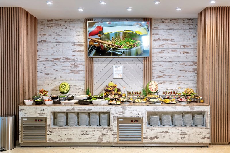 - All Inclusive: Frühstück (Buffet), Mittagessen (Buffet), Abendessen (Buffet), Getränke kostenfrei (Softdrinks, Mineralwasser, Kaffee/Tee, Bier, Säfte, Hauswein, Cocktails, 8:30-23 Uhr), Snacks (10-11 Uhr), Snacks (15-17 Uhr), Kaffee/Tee und Gebäck (15-17 Uhr), Eis (15-17 Uhr)