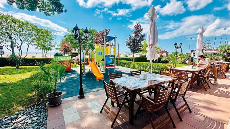 - All Inclusive: Raňajky (bufet), obed (bufet), večera (bufet), nápoje zdarma (nealkoholické nápoje, minerálna voda, káva/čaj, pivo, džúsy, domáce víno, koktaily, 8:30-23:00), občerstvenie (10:00-11:00), občerstvenie (15:00-17:00), káva/čaj a pečivo (15:00-17:00), zmrzlina (15:00-17:00)