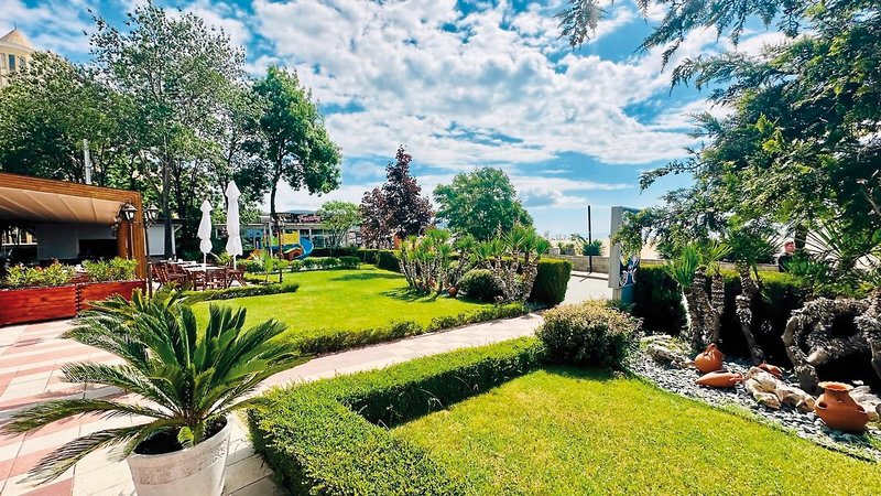 - All Inclusive: Raňajky (bufet), obed (bufet), večera (bufet), nápoje zdarma (nealkoholické nápoje, minerálna voda, káva/čaj, pivo, džúsy, domáce víno, koktaily, 8:30-23:00), občerstvenie (10:00-11:00), občerstvenie (15:00-17:00), káva/čaj a pečivo (15:00-17:00), zmrzlina (15:00-17:00)