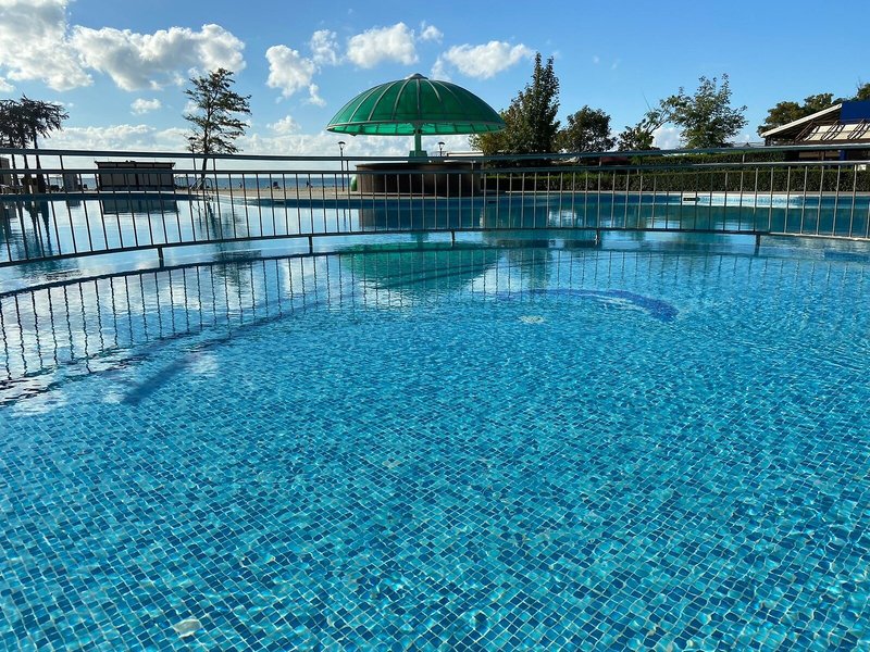 - Pláž: piesočná, mierne sa zvažujúca, ležadlá, slnečníky