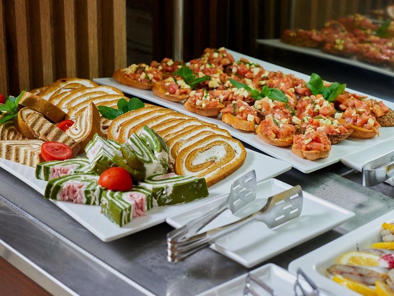 - Hauptrestaurant „Main Restaurant BELLEVUE“: Küche: international, Kinderbuffet, Buffet, klimatisierbar, mit Terrasse, Raucherbereich, Kinderhochstuhl, angemessene Kleidung erwünscht