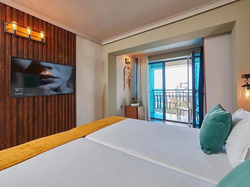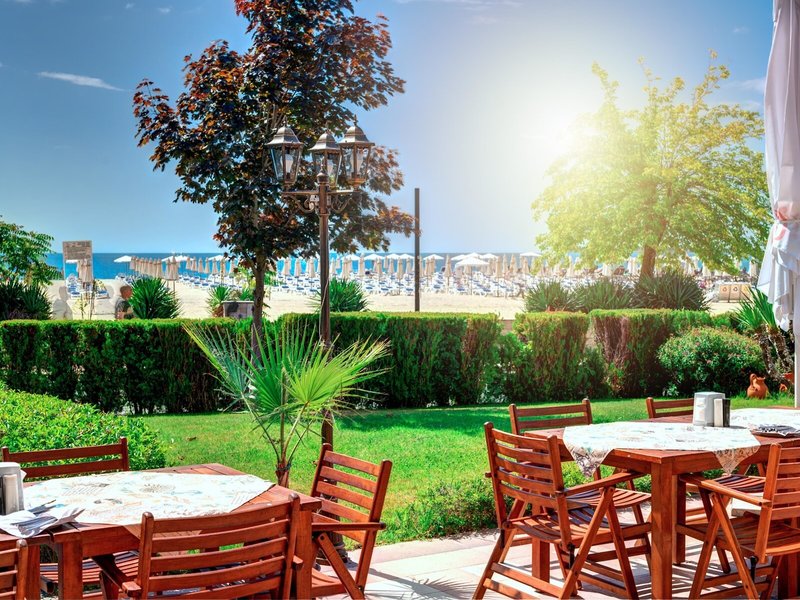 Lage & Umgebung Das Hotel liegt an der Strandpromenade von Sunny Beach. Der Strand, eine Vielzahl an Restaurants, Bars, Clubs sowie Geschäfte und Haltestellen der öffentlichen Verkehrsmittel befinden sich ganz in der Nähe. Das Stadtzentrum und der Busbahnhof liegen nur rund 2,5 km entfernt, außerdem verkehren regelmäßig Minizüge und Busse ins alte Nessebar. Bis zum Flughafen Bourgas sind es rund 30 km, bis zum Flughafen Varna ungefähr 120 km.
