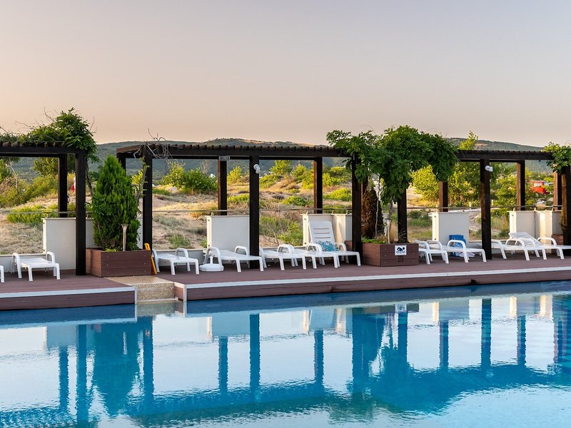 - Bazény: detský bazén, vonkajší bazén, slnečníky pri bazéne, ležadlá pri bazéne, tobogán