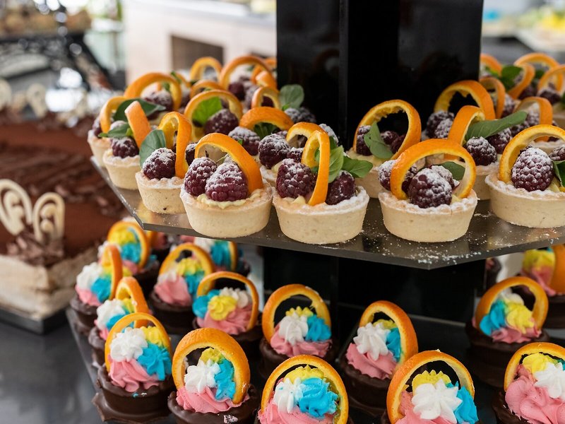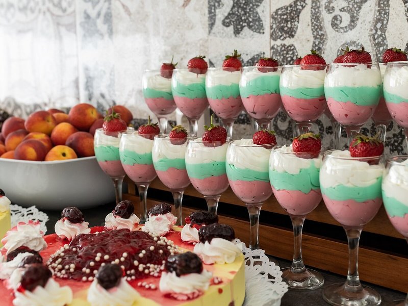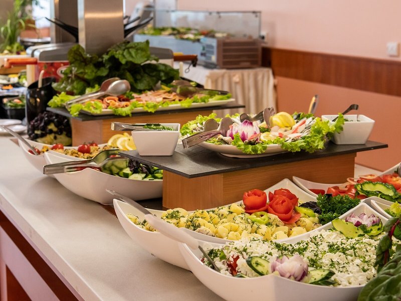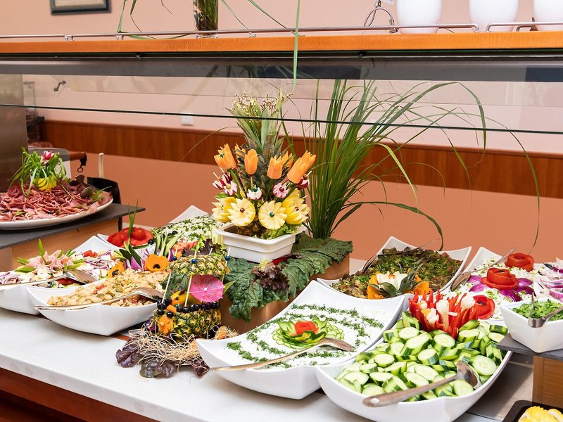 Jedlo a pitie: Gastronomická časť zahŕňa reštauráciu a bar. Je možné si objednať rôzne cateringové služby. Hostia si môžu vybrať medzi polpenziou a all inclusive. V ponuke sú raňajky, obedy a večere. Dom poskytuje aj občerstvenie. Hotel ponúka široký sortiment alkoholických a nealkoholických nápojov.