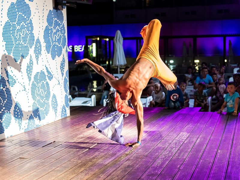 Sport & Fitness: Die Außenpoolanlage mit Kinderbereich eignet sich hervorragend für aktive Erholung und regelmäßiges Aquatraining. Zudem bringen erfrischende Getränke an der Pool-/Snackbar und eine Wasserrutsche alle Wasserratten in die beste Stimmung. Bequeme Liegestühle und Schatten spendende Schirme stehen auf der Sonnenterrasse bereit. Wem der Sinn nach Bewegung steht, werden Beachvolleyball und Bogenschießen angeboten. Zum Strand- und Wassersportangebot gehört Windsurfen. Die Unterbringung bietet eine Vielzahl an Möglichkeiten zur sportlichen Aktivität im Indoor-Bereich, wie etwa ein Fitnessstudio, Tischtennis, Darts, Yoga und Aerobic sowie gebührenpflichtig Billard. Im Wellnessbereich stehen Spa, Sauna und Massage-Anwendungen zur Verfügung. Zu den weiteren Freizeitangeboten zählen ein Animationsprogramm, ein Miniclub und eine Minidisco.