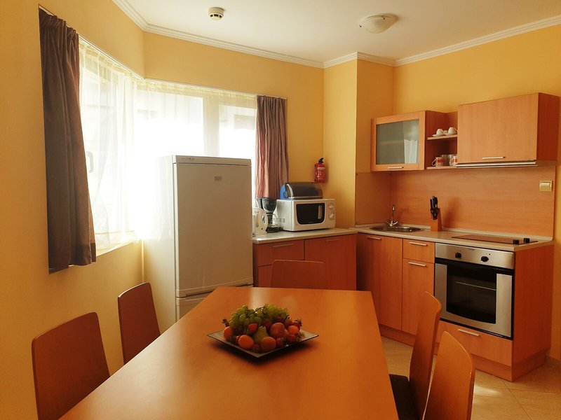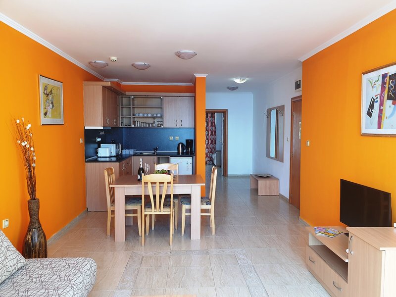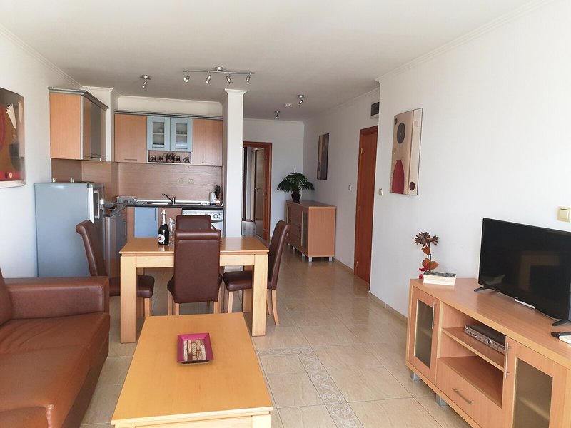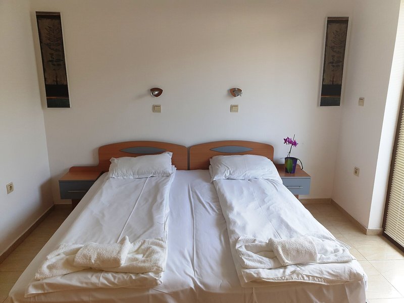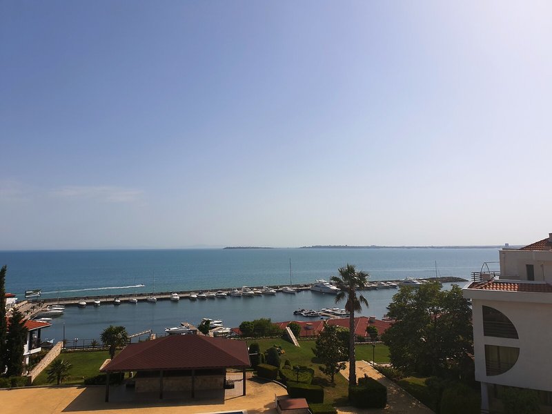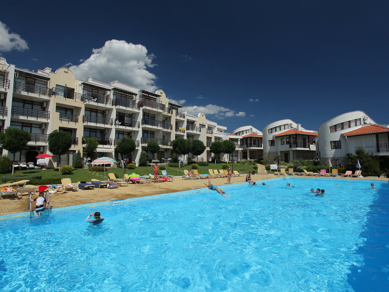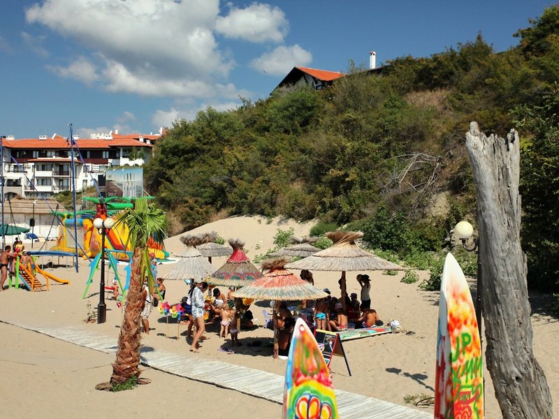 Lage & Umgebung Das Aparthotel liegt etwa 50 m vom Strand in Sweti Wlas entfernt. Hier befinden sich eine wunderschöne Küstenpromenade und der schönste Jachthafen von Bulgarien mit einer lebhaften Atmosphäre, Nachtleben und 8 hervorragenden Restaurants. Etwa 850 m sind es bis zum Zentrum von Sweti Wlas mit seiner gemütlichen Atmosphäre, die von den bunten Straßenlädchen, kleinen Restaurants, Geschäften und freundlichen Einheimischen bestimmt wird. Ganz in der Nähe liegen auch mindestens 10 Restaurants und Bistros sowie 2 Supermärkte, bei denen man Frühstück bestellen kann. Am Jachthafen von Sweti Wlas befinden sich diverse Clubs. Vielleicht möchten die Gäste auch die Altstadt von Nessebar besuchen, die etwa 6 km entfernt liegt. Oder man macht einen Ausflug zum S.Beach Action Aqua Park oder zum Delfinarium von Warna in ca. 90 km Entfernung. Die Altstadt von Sozopol erreicht man nach etwa 70 km. Der Busbahnhof liegt ca. 350 m entfernt. Der Flughafen von Burgas ist ungefähr 40 km vom Aparthotel entfernt, zum Flughafen von Warna sind es etwa 90 km.