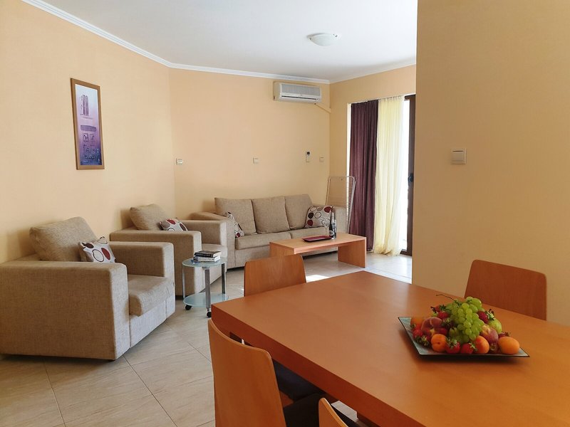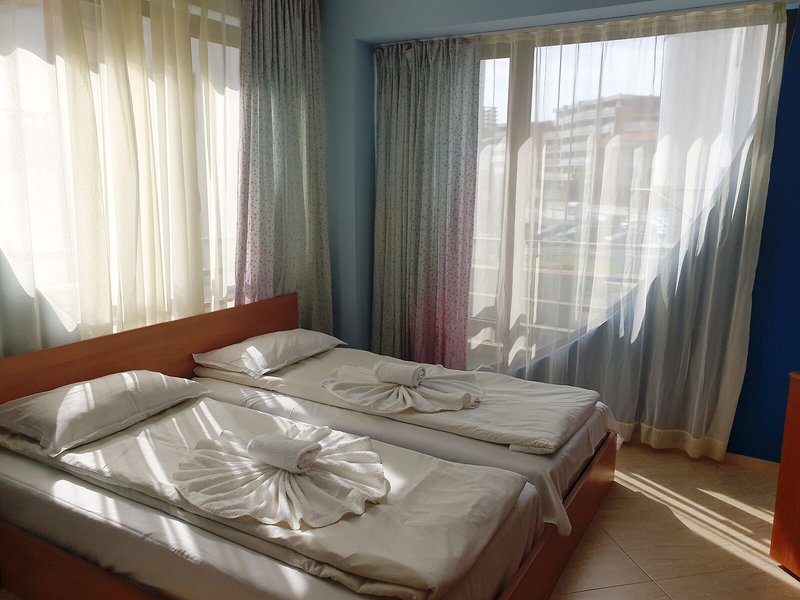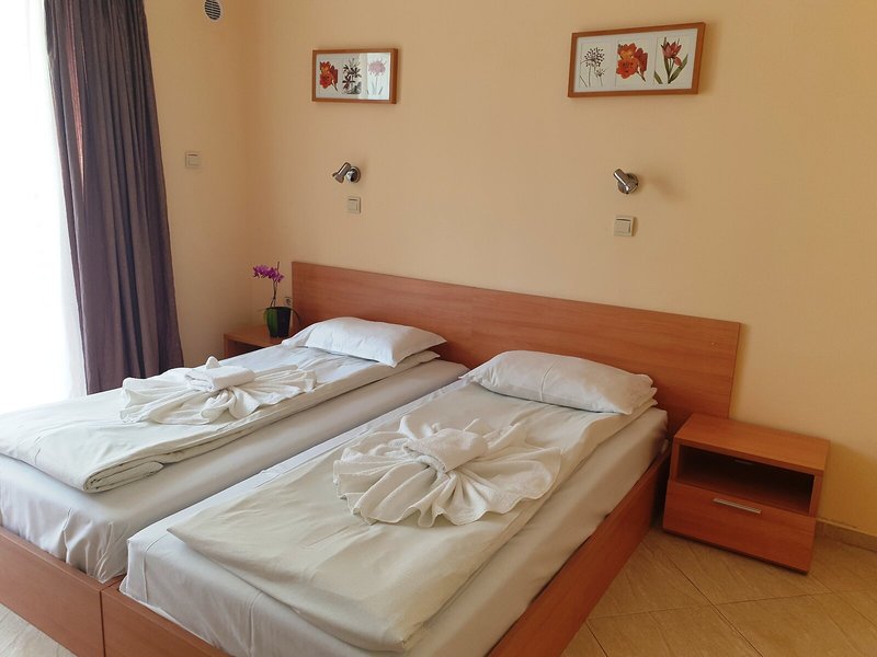 Poloha a okolie Aparthotel sa nachádza asi 50 m od pláže v letovisku Sveti Vlas. Nájdete tu krásnu pobrežnú promenádu a najkrajší prístav v Bulharsku s bujarou atmosférou, nočným životom a 8 vynikajúcimi reštauráciami. Do centra mesta Sveti Vlas s útulnou atmosférou, ktorú definujú pestré pouličné obchodíky, malé reštaurácie, obchodíky a priateľskí miestni obyvatelia, je to asi 850 m. V blízkosti je tiež najmenej 10 reštaurácií a bistier, ako aj 2 supermarkety, kde si môžete objednať raňajky. V prístave Sveti Vlas sú rôzne kluby. Hostia môžu tiež navštíviť Staré Mesto Nessebar, ktoré je vzdialené približne 6 km. Alebo si môžete urobiť výlet do aquaparku S.Beach Action a delfinária Varna, ktoré sú vzdialené cca 90 km. Do starého mesta Sozopol sa dostanete asi po 70 km. Autobusová stanica je vzdialená cca 350 m. Letisko Burgas je od apartmánového hotela vzdialené približne 40 km a letisko Varna približne 90 km.