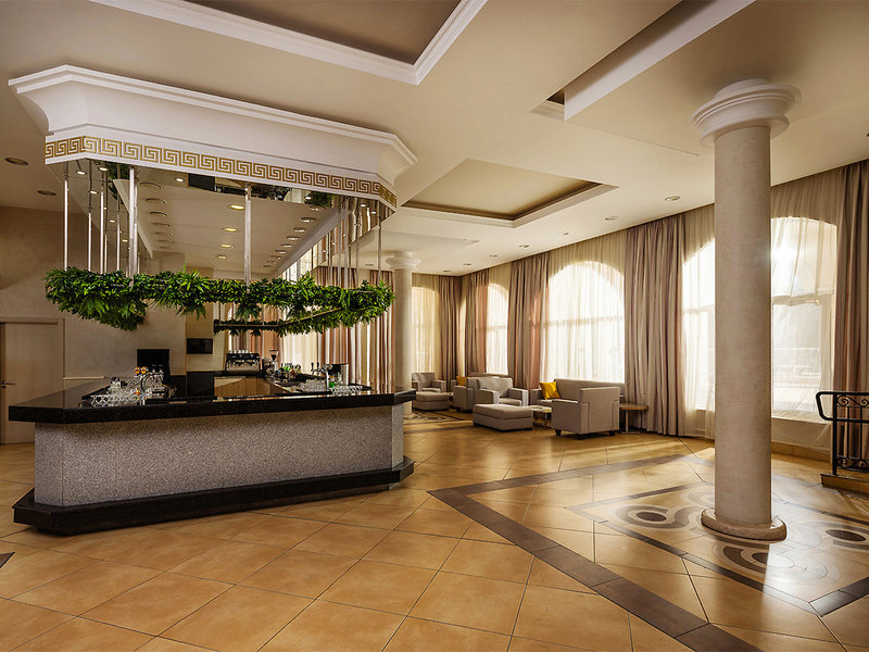 Ausstattung: Gartenanlage mit 5 Swimmingpools (4 Outdoor, 1 Indoor Pool), Wasserrutschen, Kinderpool, Sonnenterrasse, Liegen und Schirme am Pool und am Strand inklusive, Badetücher, Sportsbar. Empfangsbereich, Rezeption, WLAN im gesamten Hotel, Hauptrestaurant mit Außenterrasse, Themenrestaurant (gegen Reservierung, international), Lobbybar, Salonbar mit Terrasse. Landeskategorie: 5 Sterne, 597 Zimmer, 10 Etagen, Lifte.