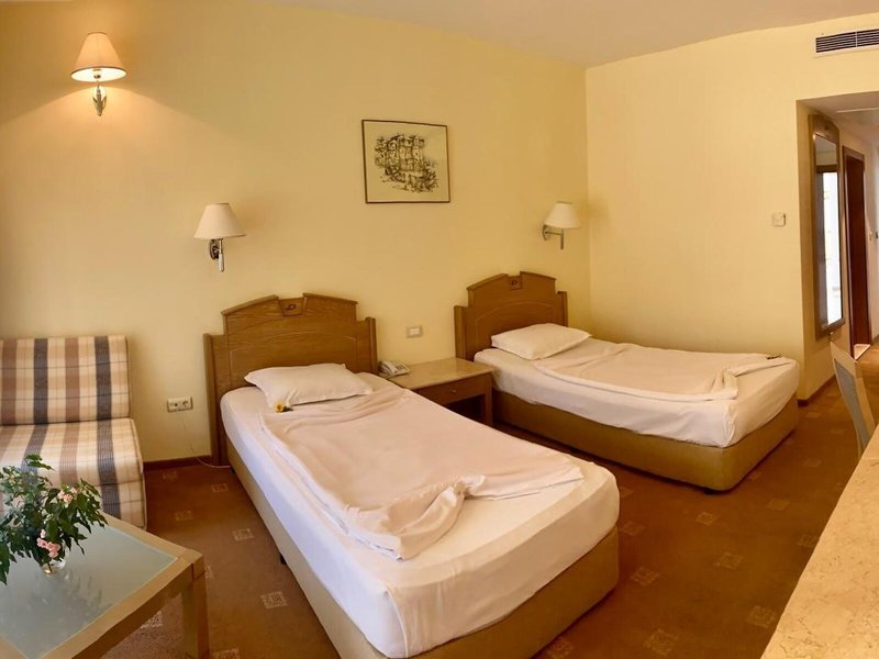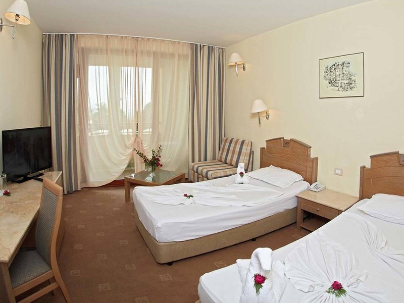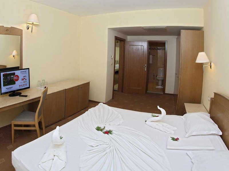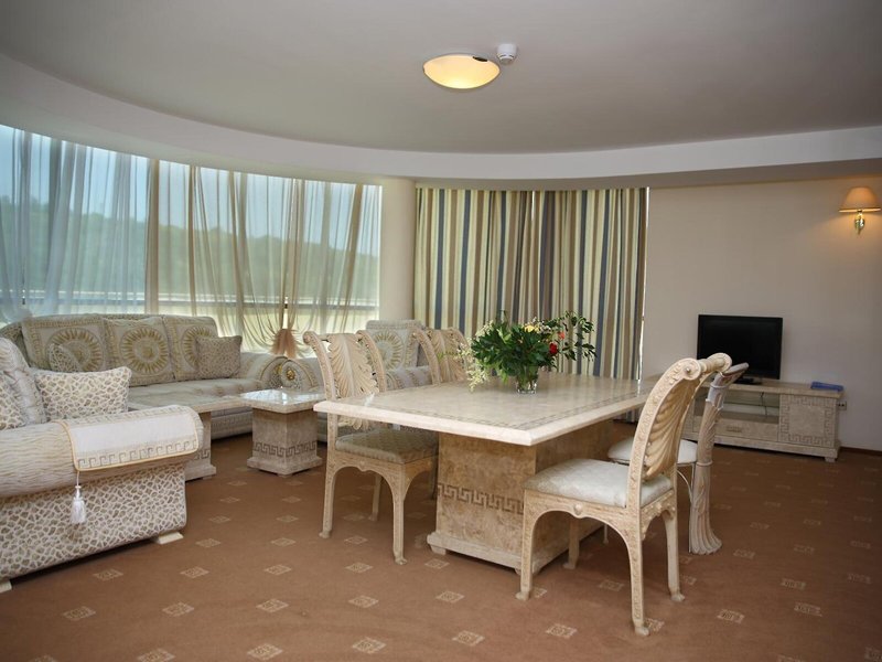 Ubytovanie: Klimatizácia zabezpečuje príjemnú vnútornú klímu. Hostia si môžu vychutnať výhľad na more z balkóna alebo terasy. Izby s kobercami sú vybavené manželskou posteľou a rozkladacou pohovkou. K dispozícii sú aj samostatné spálne. Pre mladších hostí sú k dispozícii aj detské postieľky. K dispozícii je aj trezor, minibar a písací stôl. Štandardom je aj chladnička. Telefón s priamou voľbou, TV so satelitnými/káblovými programami a Wi-Fi (za poplatok) zabezpečujú najlepší komfort počas dovolenky. Kúpeľňa so sprchovacím kútom a vaňou je vybavená sušičom vlasov a telefónom. Komplex ponúka rodinné a nefajčiarske izby.