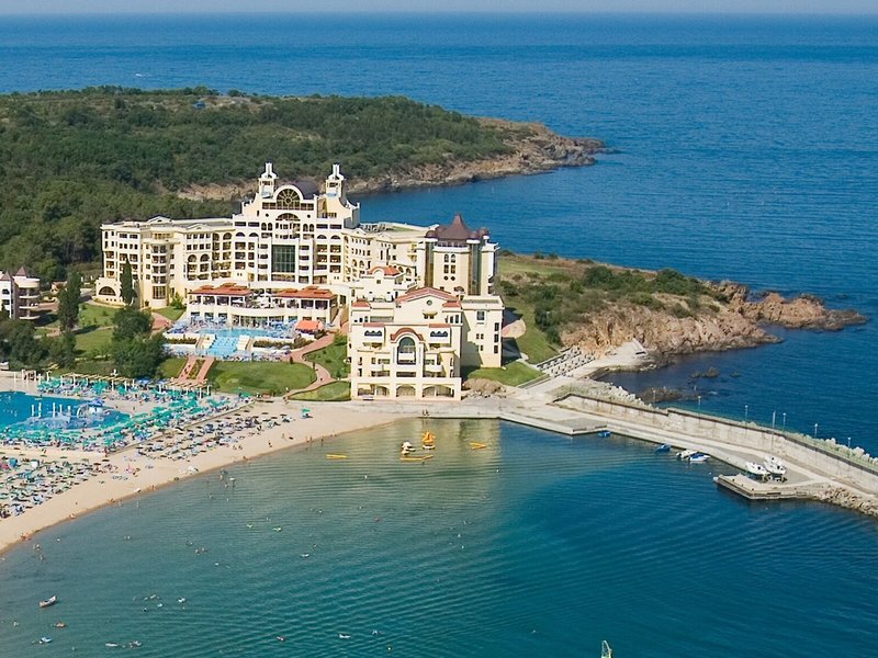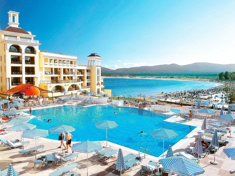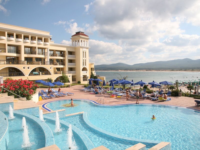 Lage & Umgebung Das Hotel liegt in der Bucht von Duni, einem staatlichen Naturschutzgebiet, etwa 40 km von Burgas entfernt. Der Strand ist ungefähr 50 m vom Hotel entfernt. Zum Flughafen Burgas sind es etwa 53 km.