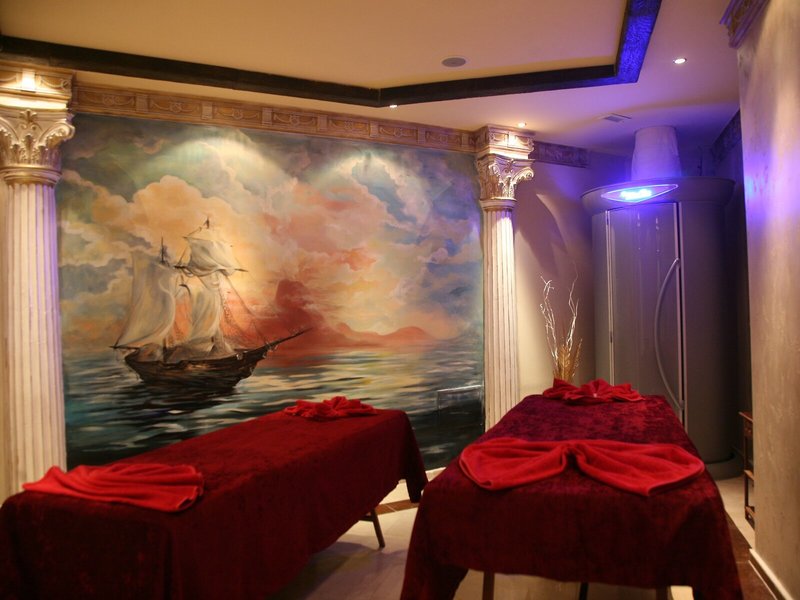 Sport & Fitness: Neben Innen- und Außenpools gibt es einen Kinderbadebereich. Pure Tiefenentspannung im Whirlpool, Vergnügen auf der Wasserrutsche und erfrischende Getränke an der Poolbar – die Gäste werden erleben, wie abwechslungsreich der Wasserspaß sein kann. Auf der Sonnenterrasse mit Liegestühlen und Schirmen lässt sich der Urlaub genießen. Die Unterbringung bietet mit Radfahren/Mountainbiking, Tennis, Boccia, Beachvolleyball, Minigolf und Bogenschießen Möglichkeiten zum Sport im Freien. Mit Wasserskifahren, Windsurfen, Jetskifahren, Bananenbootfahren, Tauchen, Wasseraerobic und Aqua-Fitness kommen auch Wassersportfreunde auf ihre Kosten. Den Gästen steht im Komplex mit einem Fitnessstudio, Tischtennis, Billard, Darts, Yoga, Gymnastik und Aerobic ein breites Spektrum an Indoor-Sportarten zur Auswahl. Das Feriendorf verfügt über einen Wellnessbereich mit einem Spa, einer Sauna, einem Dampfbad, einem Hammam und einem Schönheitssalon. Kostenpflichtig: Massage-Anwendungen. Ein Animationsprogramm, ein Miniclub, eine Minidisco, Live-Musik, eine Disco und ein Nachtclub sorgen für besten Freizeitspaß.