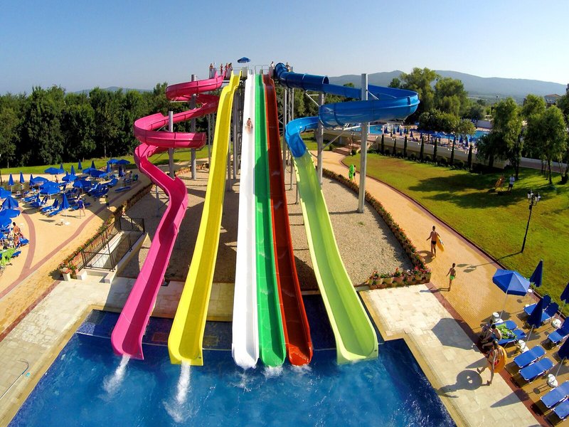 - Bazény: detský bazén, vnútorný bazén, vonkajší bazén, slnečníky pri bazéne, ležadlá pri bazéne, tobogán