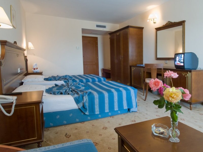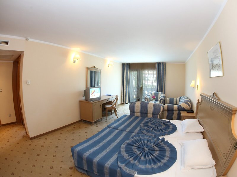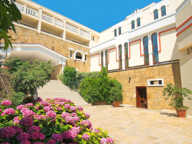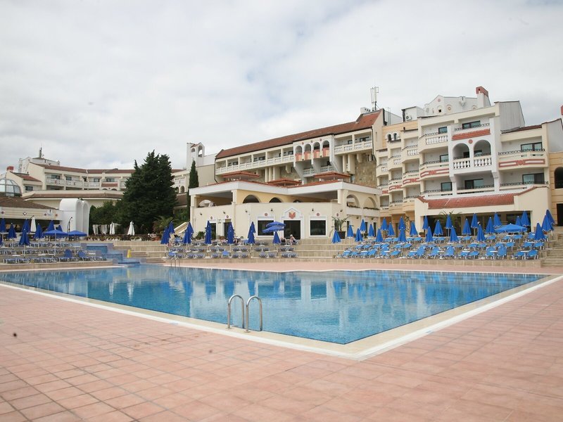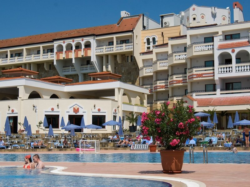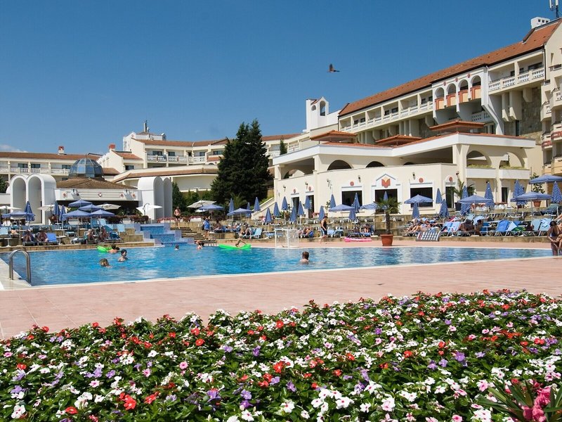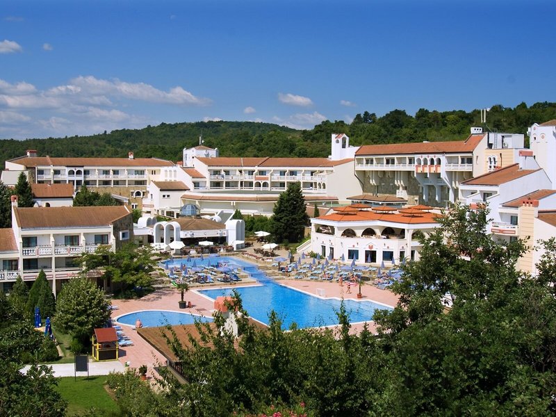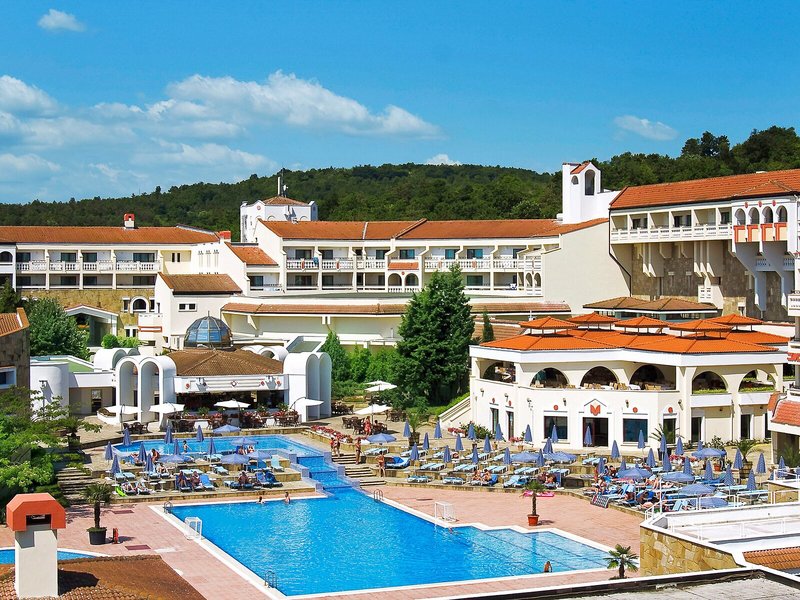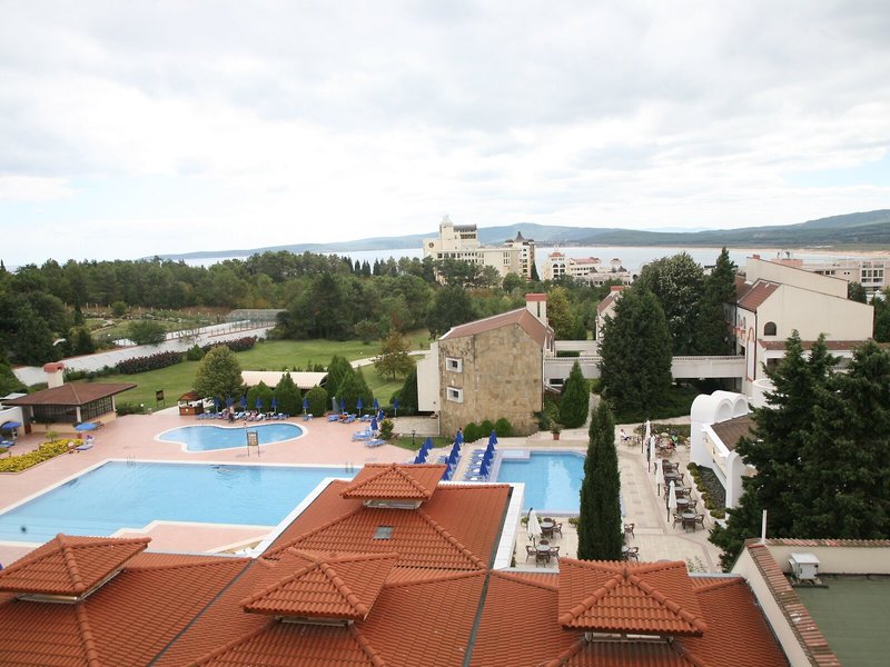 Lage & Umgebung Das Hotel ist hoch gelegen und bietet einen Blick auf die gesamte Buch von Duni. Den Strand erreicht man in etwa 7 Gehminuten. Der Flughafen Burgas liegt ca. 53 km entfernt, der Flughafen Varna ist rund 170 km weit weg.