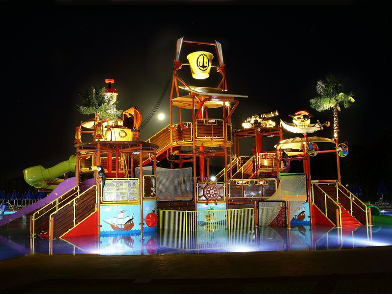 Sport & Fitness: Ein Außenpool und ein Hallenbad laden zum entspannten Badevergnügen ein. Kinder können sich in einem Planschbecken austoben. Zudem bringen erfrischende Getränke an der Pool-/Snackbar und eine Wasserrutsche alle Wasserratten in die beste Stimmung. Auf der Sonnenterrasse sind Liegestühle und Schirme vorhanden. Abwechslung bieten viele verschiedene Sportaktivitäten, die in der Unterbringung angeboten werden, wie z.B. Radfahren/Mountainbiking, Tennis, Boccia, Beachvolleyball und Bogenschießen und gegen Gebühr Minigolf. Mit Aqua-Fitness und gegen Gebühr Wasserskifahren, Jetskifahren, Tretbootfahren, Bananenbootfahren und Katamaranfahren kommen auch Wassersportfreunde auf ihre Kosten. Fitnessstudio und Tischtennis sind Teil des Sport- und Freizeitangebots des Hotels. Im Haus werden jeweils gegen Gebühr verschiedene Wellnessangebote wie ein Spa, eine Sauna, ein Schönheitssalon und Massage-Anwendungen offeriert. Große und kleine Gäste haben die Möglichkeit, interessante Unterhaltungsprogramme zu erleben.