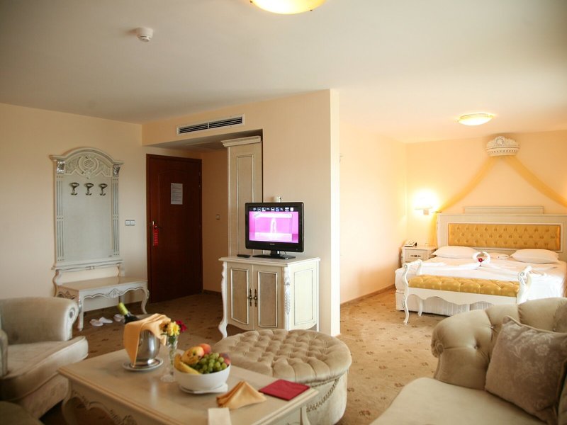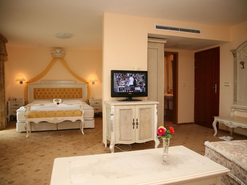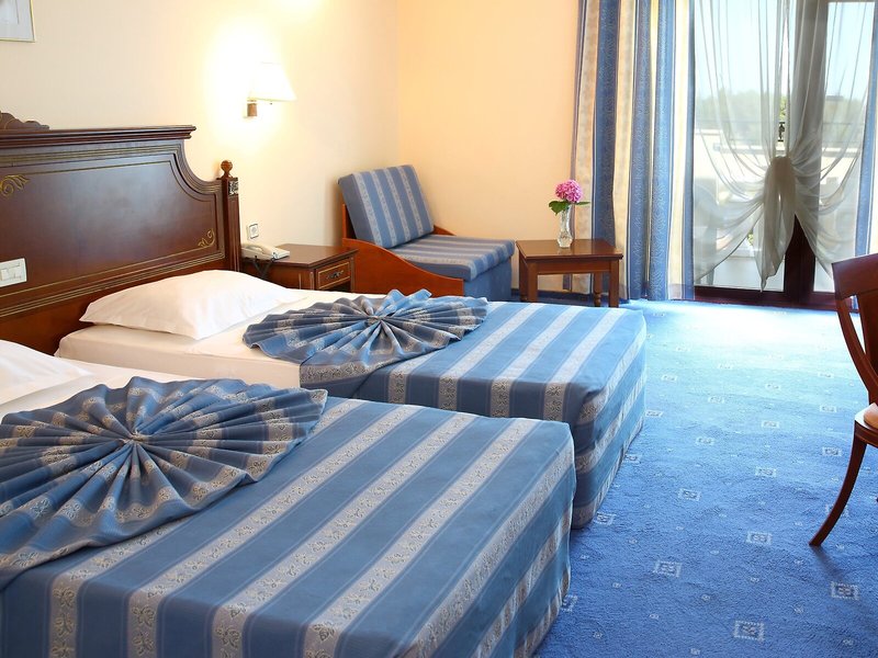 Vaše ubytovanie: Klimatizácia zabezpečuje príjemnú vnútornú klímu v izbách. Hostia si môžu vychutnať výhľad na more z balkóna alebo terasy. Izby s kobercom majú manželskú posteľ. K dispozícii sú aj detské postieľky pre najmenších hostí. K dispozícii je aj trezor, minibar a písací stôl. Pre väčšie pohodlie hostí je k dispozícii súprava na žehlenie. Okrem toho je tu telefón s priamou voľbou, TV so satelitným/káblovým príjmom a WiFi. V kúpeľni so sprchovacím kútom a vaňou máte k dispozícii sušič vlasov a telefón. Hotel ponúka rodinné izby a 238 nefajčiarskych izieb.