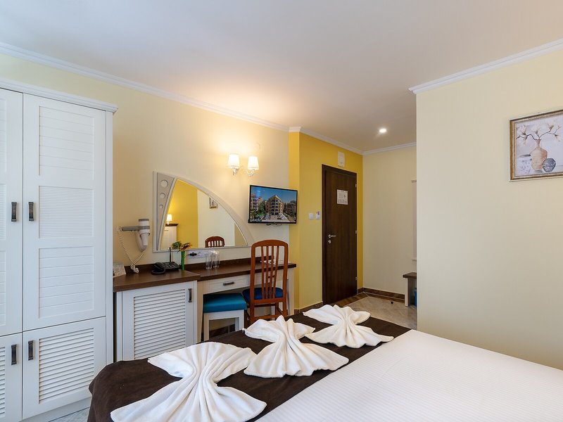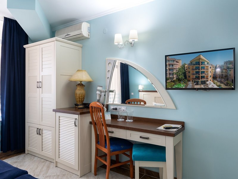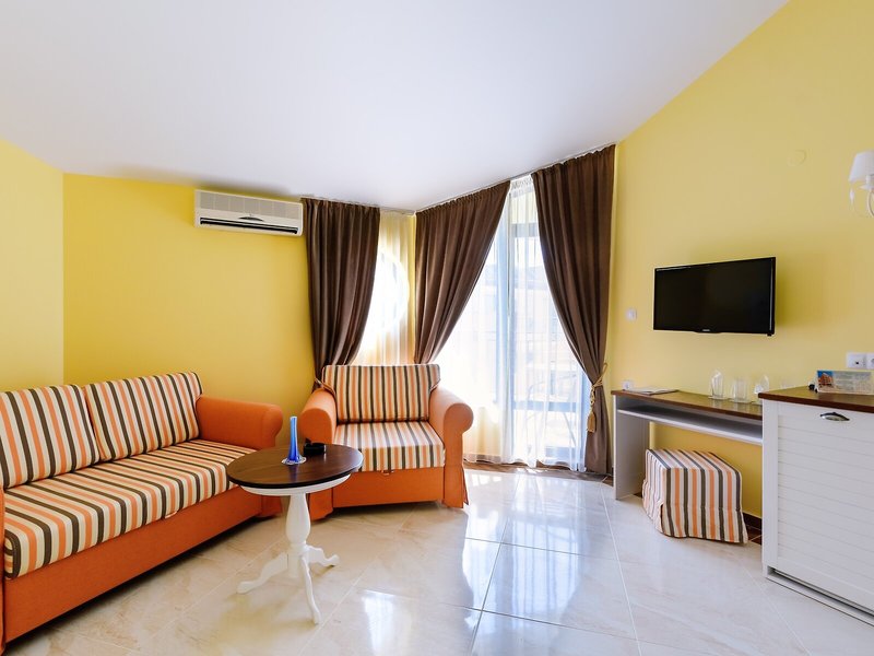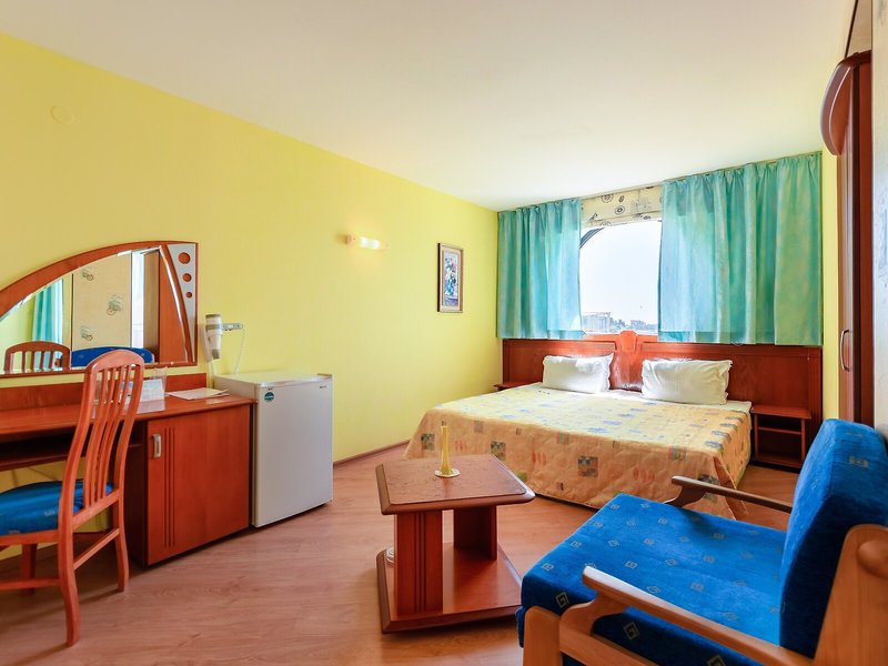 - Štúdio SV (STM1), Junior Suite, Nefajčiarska izba, v hlavnej budove, pri pláži, výhľad na more, výhľad na záliv, cca 45 m², posledná kompletná rekonštrukcia 2022, posledná čiastočná rekonštrukcia 2022, celkový počet izieb tohto typu: 6, dispozičné riešenie: kombinovaná obývacia izba/spálňa, vizuálne oddelená detská izba, 3 samostatné postele (200x100cm), 1 rozkladacia pohovka (192x72cm), detská postieľka, klimatizácia: individuálne ovládaná, chladenie, teplo, kúrenie: individuálne ovládané, podlaha: dlažba, trezor, stojaci ventilátor, pohovka, internet: Wi-Fi, TV: plochá obrazovka, v obývacej časti, dokovacia stanica pre iPod, izbová služba, upratovacia služba, vaňa alebo sprcha, WC, fén, balkón: s posedením, balkón alebo terasa: s posedením, terasa: s ležadlami, s ležadlami, s posedením, spoločná terasa