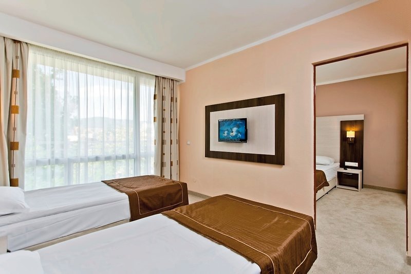 - 36-40 m2, junior suite, výhľad na krajinu, nefajčiarske, 2 oddelené spálne, 1 kúpeľňa, sprcha, ručná sprcha, 1 WC, fén, koberec, klimatizácia, trezor, 1 TV (satelitná TV, nemecky jazyčný program, miestny program, iný program), WiFi, chladnička, balkón