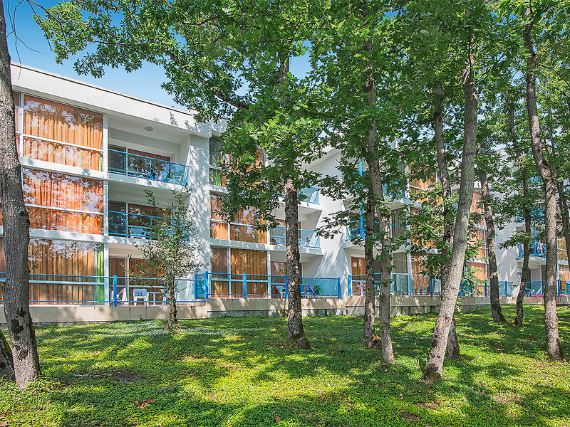 Lage: In einen Wald eingebettet, mit direktem Anschluss an den langen, breiten und feinsandigen Strand. Unterhaltungs- und Einkaufsmöglichkeiten sowie verschiedene Restaurants befinden sich in ca. 2,5 km Entfernung in Primorsko und Kiten.