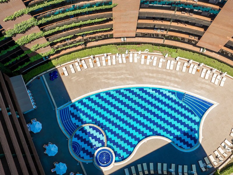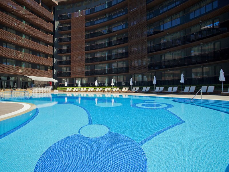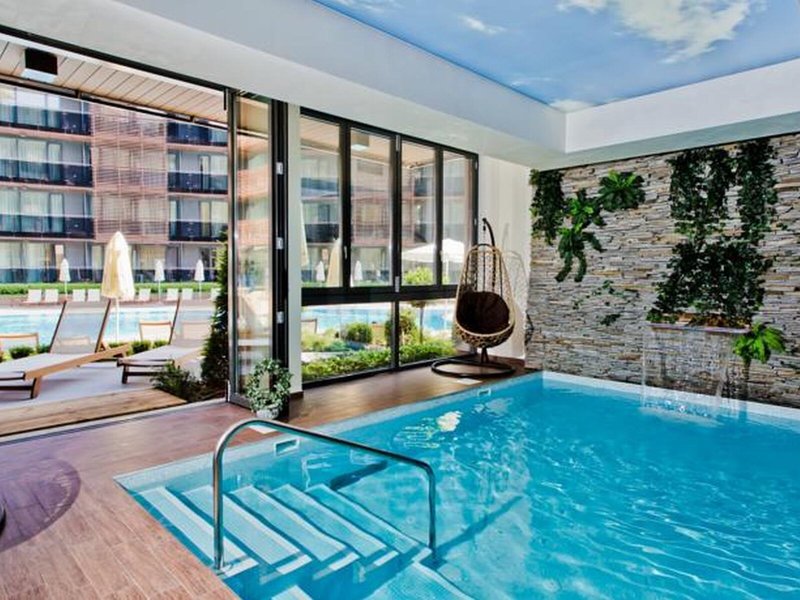- Bazény: Detský bazén, Vyhrievaný vonkajší bazén, Vnútorný bazén, Vonkajší bazén, Slnečníky, Ležadlá pri bazéne