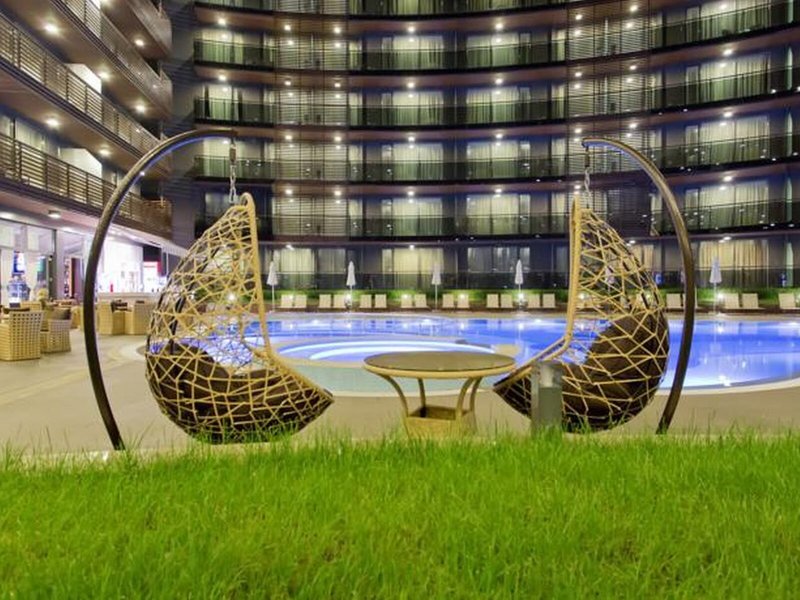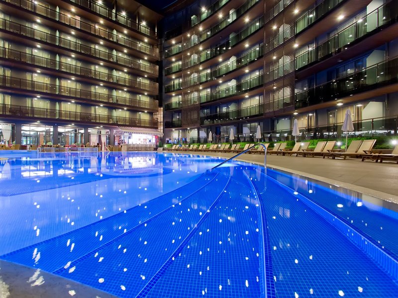 Šport & Fitness: Príjemne vyhrievaná voda v bazénovej časti s vnútornými a vonkajšími bazénmi zabezpečuje zdravý zážitok z kúpania. K dispozícii je aj detský kútik na kúpanie. Osviežujúce nápoje pri bazéne/snack bare a relax vo vírivke dodajú všetkým milovníkom vody tú najlepšiu náladu. K dispozícii je slnečná terasa, ležadlá a slnečníky. Pre tých, ktorí majú chuť byť aktívny, je k dispozícii tenis a jazda na koni. Posilňovňa, gymnastika a aerobik sú súčasťou hotelovej športovej a rekreačnej ponuky. Ubytovanie ponúka rôzne možnosti wellness, ako sú kúpele, sauna, parný kúpeľ, hammam, kozmetický salón a masáže. Zábavný program zahŕňa miniklub a diskotéku.