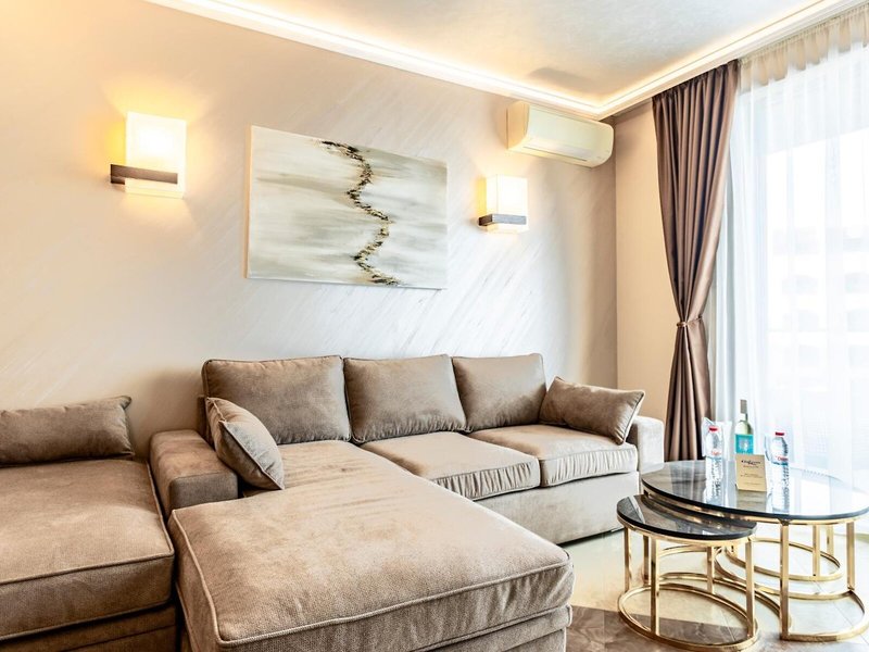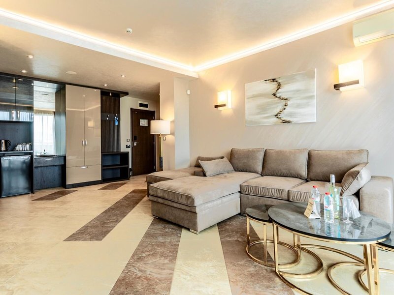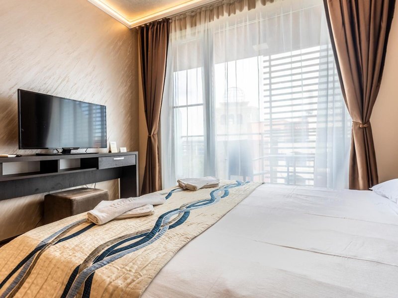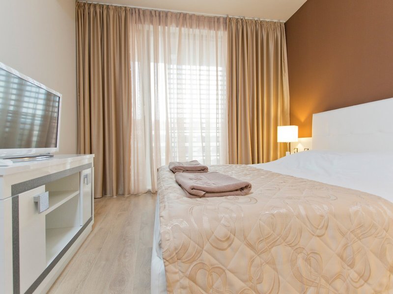 Ubytovanie: Izby majú obývaciu izbu, kuchyňu a kúpeľňu. Klimatizácia a kúrenie zabezpečujú príjemnú klímu v izbe. Hostia si môžu vychutnať výhľad na more z balkóna alebo terasy. Izby sú vybavené manželskou posteľou a rozkladacou pohovkou. K dispozícii sú samostatné spálne. Môžu byť poskytnuté aj detské postieľky a prístelky. K dispozícii je aj trezor a minibar. Kuchynka je vybavená chladničkou, mini chladničkou a zariadením na prípravu čaju/kávy. Telefón, TV a Wi-Fi pripojenie (bezplatné) zabezpečujú najlepší komfort počas dovolenky. Kúpeľňa je vybavená sprchovacím kútom a vaňou a sušičom vlasov. Pre väčšie pohodlie sú k dispozícii toaletné potreby. K dispozícii sú aj bezbariérové izby s bezbariérovými kúpeľňami. Hotel ponúka rodinné a nefajčiarske izby.