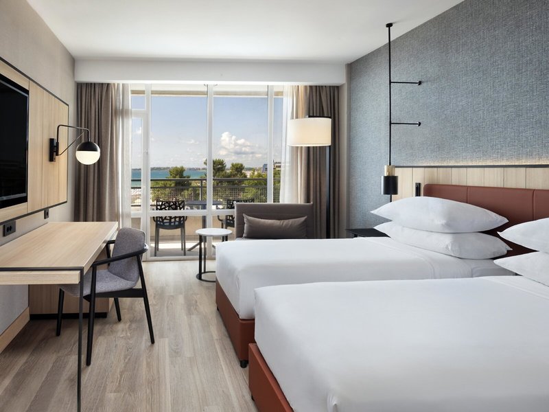 - Dvojlôžková izba Promotion (DZZ1), dvojlôžková izba, výhľad na more, výhľad na mesto, cca 20 m², posledná kompletná rekonštrukcia v roku 2023, celkový počet izieb v tomto type izby: 1, rozloženie: kombinovaná obývacia izba/spálňa, 1 king. veľká posteľ, 1 rozkladacia pohovka, klimatizácia : bez poplatku, sezónna, individuálne nastaviteľná, centrálne ovládaná, podlaha: koberec, trezor: bez poplatku, pohovka, písací stôl, telefón, Internet: WLAN/WiFi: bez poplatku, TV: plochá obrazovka, v spálni, káblová TV, izbová služba: denne 7:00 - 22:00, za poplatok, upratovacia služba: denne 24 hodín, zdarma, sprcha, WC, fén