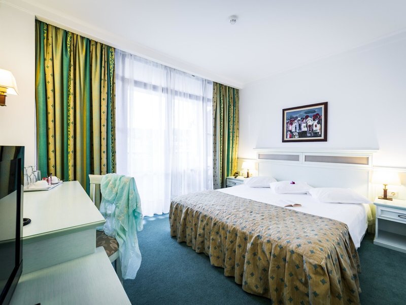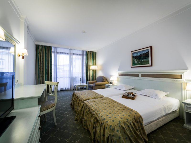 - Dvojlôžková izba typ 1 (DZX1), dvojlôžková izba, nefajčiarska izba, v hlavnej budove, strana do ulice, výhľad na mesto, výhľad na mesto/ulicu, cca 15 - 20 m², posledná čiastočná rekonštrukcia v roku 2019, celkový počet izieb v tento typ izby: 1, rozloženie: kombinovaná obývačka/spálňa, detská postieľka: zadarmo, klimatizácia: zadarmo, zahrnuté v All Inclusive, centrálne ovládané, kúrenie: centrálne ovládané, podlaha: dlažba, koberec, trezor: zadarmo, príslušenstvo na prípravu kávy/čaju, minibar: za príplatok, platba v hotovosti, telefón , Internet: WLAN/WiFi: zadarmo, v cene all inclusive, TV: plochá obrazovka, satelitná TV, vaňa, WC, sušič vlasov , balkón alebo terasa: s posedením