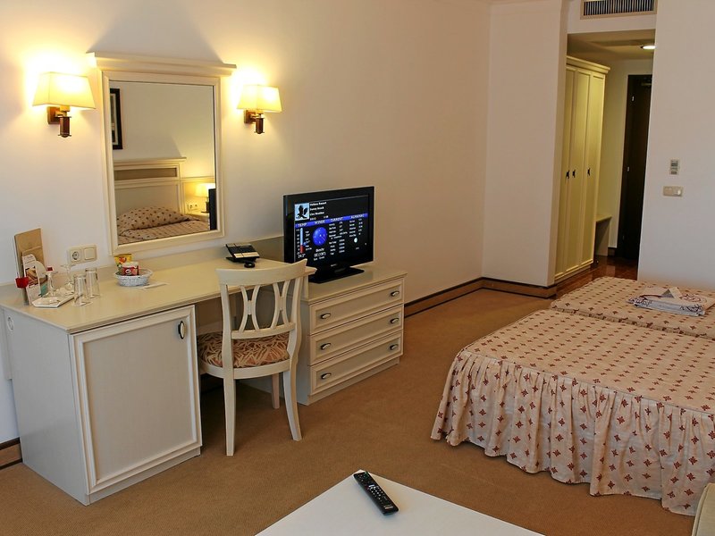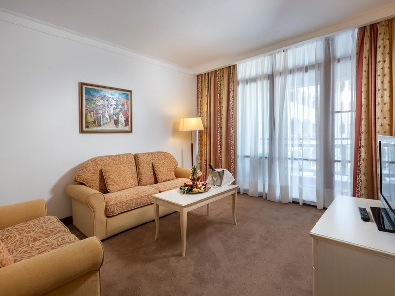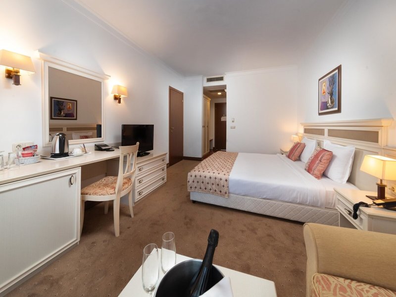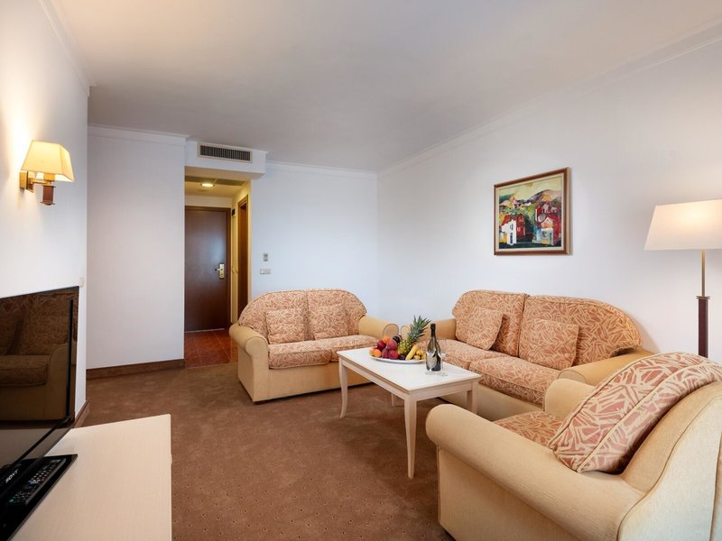 - Dvojlôžková izba s výhľadom na more (DZM1), dvojlôžková izba, v hlavnej budove, výhľad na more, cca 36 - 40 m², detská postieľka: bez poplatku, klimatizácia: centrálne ovládané, kúrenie: centrálne ovládané, podlaha: dlažba, koberec, trezor. , pohovka, minibar: za poplatok, telefón, internet: WLAN/WiFi, televízia: satelitná TV, upratovacia služba, vaňa alebo sprcha, WC, fén, balkón: s posedením