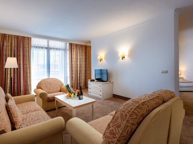 - Junior Suite Sea View (JSM1), Junior Suite, v hlavnej budove, výhľad na more, cca 65 m², kombinovaná obývacia izba/spálňa, detská postieľka, klimatizácia: centrálne ovládané, kúrenie: centrálne ovládané, podlaha: dláždená podlaha, koberec. , trezor, pohovka, minibar: za poplatok, telefón, internet: WLAN/WiFi, televízor: plochá obrazovka, v obývacej časti, v spálni, satelitná TV, izbová služba, upratovacia služba, vaňa, WC, župan, sušič vlasov, balkón: s posedením