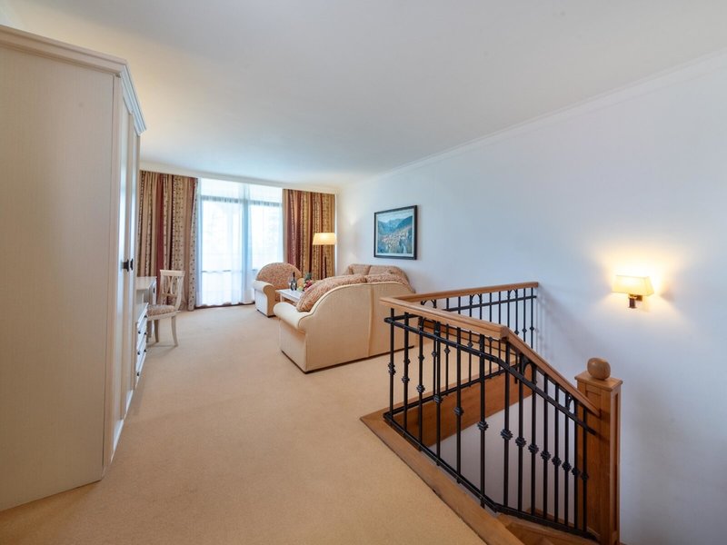 - Suita Sea View (SUM2), mezonet, v hlavnej budove, strana jazera, výhľad na more, cca 71 - 80 m², detská postieľka, klimatizácia: centrálne ovládané, kúrenie: centrálne ovládané, podlaha: dlažba, koberec, trezor, sedačka, minibar: za poplatok, telefón, internet: WLAN/WiFi, televízia: v obývacej časti, v spálni, satelitná TV, izbová služba, upratovacia služba, vaňa, WC, župan, kúpeľňa oddelená sklenenou stenou, sušič vlasov , balkón: s posedením