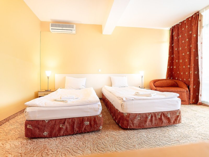 Lage & Umgebung Das Hotel befindet sich im Herzen vom Sonnenstrand und ist von vielen Bars, Restaurants, Pubs, Diskotheken und Geschäften umgeben. Nach ca. 700 m erreichen Sie den breiten Sandstrand. Öffentliche Verkehrsmittel sind etwa 100 m entfernt und nach ungefähr 1 km gelangen Sie zu einer Bushaltestelle, von wo aus Sie bequem nach Nessebar, Sozopol, Burgas und zu anderen Städten fahren können, wenn Sie sich für die Geschichte interessieren, nur einen Ausflug in die Region machen wollen oder wenn Sie preisgünstig einkaufen wollen. Der Flughafen von Burgas befindet sich in 30 km und der Flughafen von Varna in ca. 100 km Entfernung.