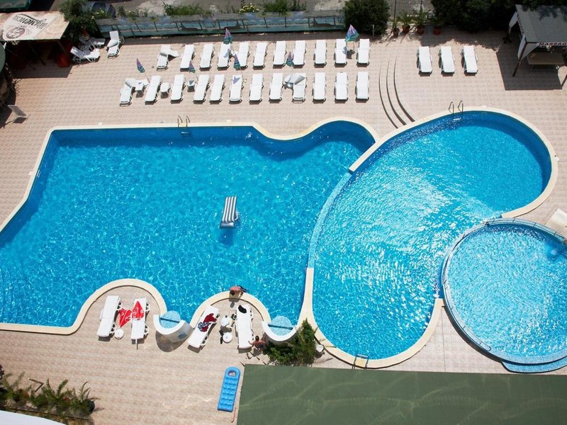 - Bazény: Detský bazén, vonkajší bazén, ležadlá pri bazéne