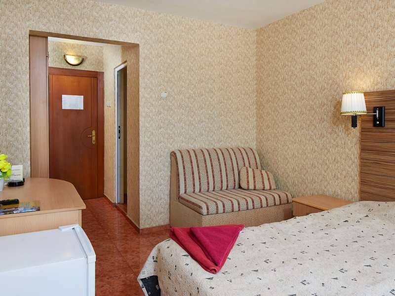 Ubytovanie: Izby sú vykurované. Izby majú posteľ king a rozkladaciu pohovku. Telefón a WiFi (zdarma) zaisťujú optimálny komfort. Hotel ponúka rodinné a nefajčiarske izby.