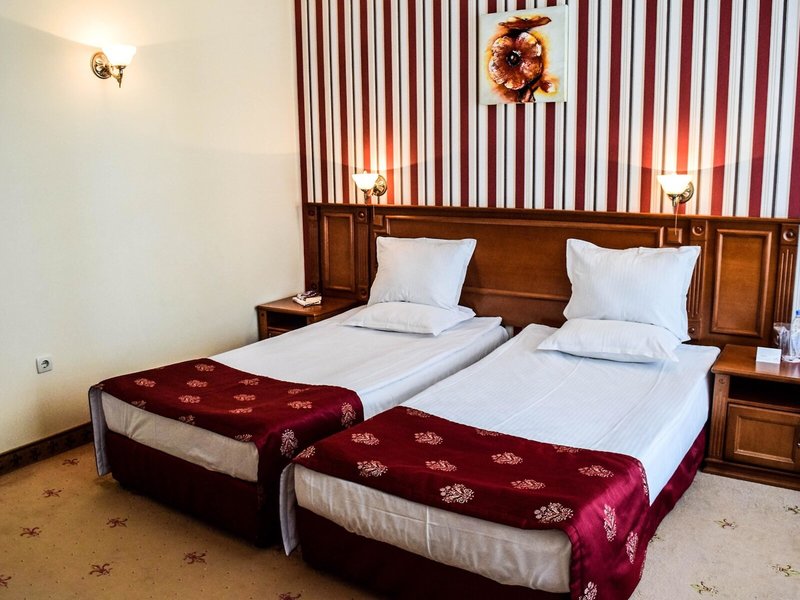 - Propagačná dvojlôžková izba (DZZ1), dvojlôžková izba, nefajčiarska izba, v hlavnej budove, cca 20-22 m², posledná čiastočná rekonštrukcia 2018, celkový počet izieb tohto typu: 1, rozloženie: 1 spálňa, 2 samostatné postele (100x200cm), detská postieľka: k dispozícii za poplatok, nie je potrebná žiadosť ani rezervácia, klimatizácia: bezplatná, individuálne ovládaná, koberec, stojaci ventilátor, písací stôl, telefón, internet: Wi-Fi: bezplatne, TV: plochá obrazovka, nemecké kanály, káblová TV, izbová služba: denne 12:00 - 23:00, za poplatok, upratovacia služba: denne, bezplatne, sprcha, WC, fén, balkón: s posedením