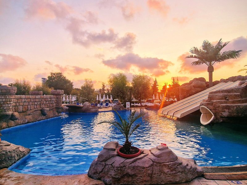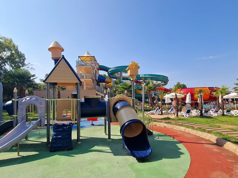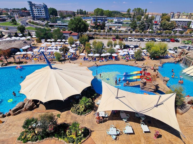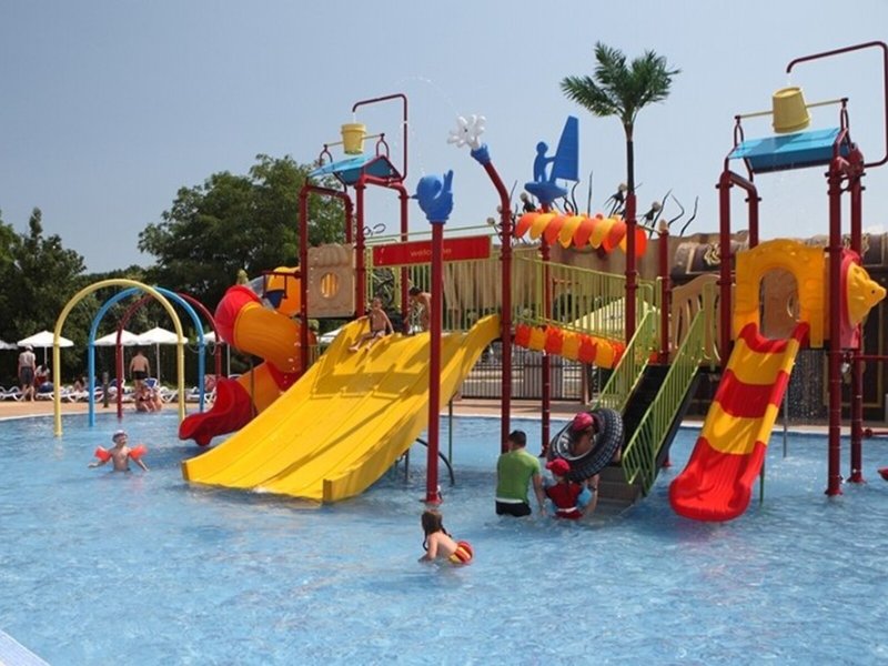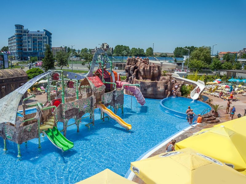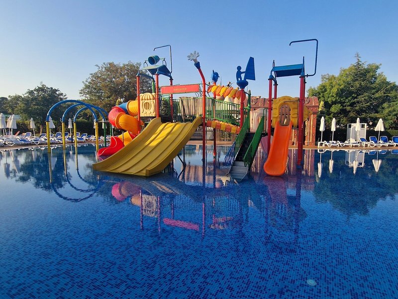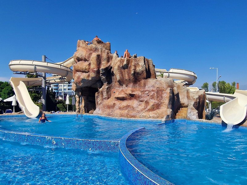 - Bazény: detský bazén, vonkajší bazén, slnečníky pri bazéne, ležadlá pri bazéne, tobogán