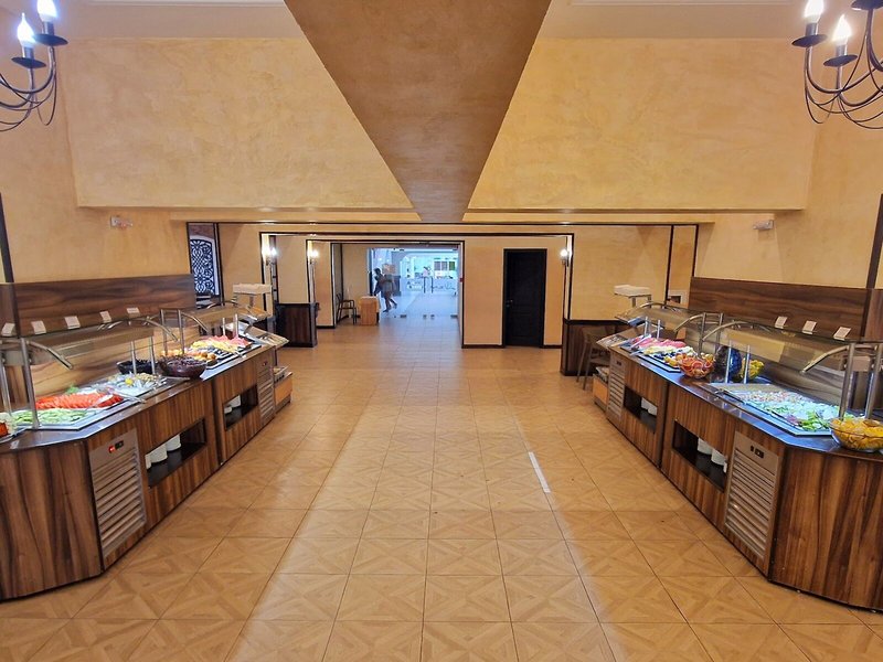 Essen & Trinken: Die gastronomischen Einrichtungen umfassen ein Restaurant, einen Speiseraum und eine Bar. Das Hotel bietet als buchbare Verpflegungsleistungen Halbpension und All-Inclusive. Frühstück, Mittagessen und ein vielfältiges Abendbuffet sind lecker und abwechslungsreich gestaltet. Darüber hinaus stellt das Haus Snacks bereit. Die Unterbringung führt ein Sortiment alkoholischer und alkoholfreier Getränke.