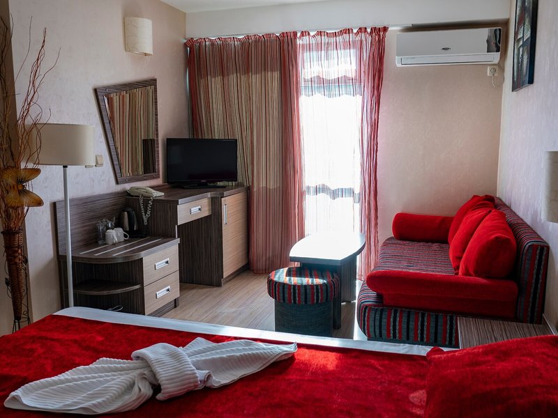 So wohnen Sie: Für angenehmes Raumklima in den Zimmern sorgen eine Klimaanlage und eine Heizung. In den meisten Zimmern zählt ein Balkon zum Standard. Die Zimmer verfügen über ein Doppelbett oder ein Sofabett. Auch Baby- und Zustellbetten können zur Verfügung gestellt werden. Außerdem sind ein Safe und eine Minibar verfügbar. Zu den Vorzügen der Zimmer gehört eine Tee-/Kaffeemaschine. Besten Urlaubskomfort bieten ein Telefon, ein TV-Gerät und WiFi (ohne Gebühr). Die Badezimmer sind ausgestattet mit einer Dusche, einer Badewanne und einer Whirlwanne. Als weitere Annehmlichkeit gibt es einen Haartrockner. Buchbar sind rollstuhlgerechte Zimmer. Das Hotel bietet Familien- und Nichtraucherzimmer.
