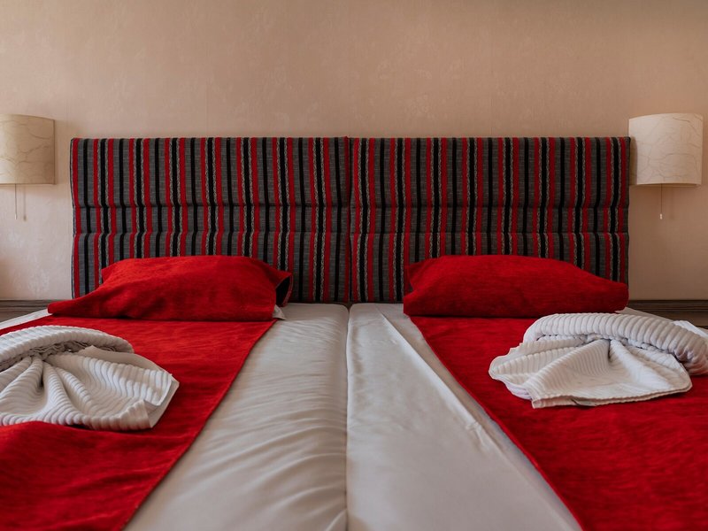 Takto sa ubytujete: Klimatizácia a kúrenie zabezpečujú príjemnú vnútornú klímu v izbách. Balkón je štandardom vo väčšine izieb. Izby majú manželskú posteľ alebo rozkladaciu pohovku. K dispozícii sú aj detské postieľky a prístelky. K dispozícii je aj trezor a minibar. K vybaveniu izieb patrí príslušenstvo na prípravu kávy/čaju. Telefón, TV a WiFi (zdarma) ponúkajú najlepší dovolenkový komfort. Kúpeľne sú vybavené sprchovacím kútom, vaňou a vírivou vaňou. Ako ďalšie pohodlie je k dispozícii sušič vlasov. Je možné si zarezervovať bezbariérové izby. Hotel ponúka rodinné a nefajčiarske izby.