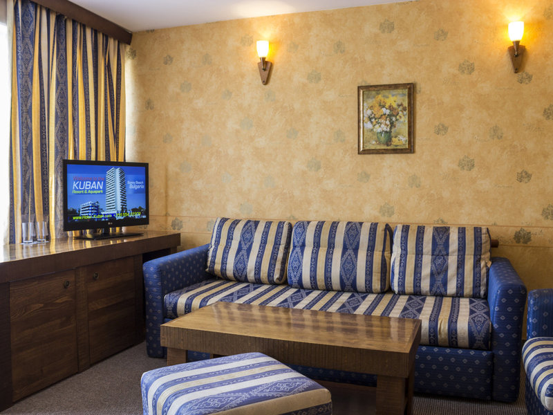 Lage & Umgebung Das Kuban Resort & Aquapark befindet sich an der Hauptpromenade, nur 150 m vom Strand entfernt und verfügt über einen eigenen Wasserpark, den die Gäste der Unterkunft kostenfrei nutzen können. Die nächste Bushaltestelle erreicht man nach 50 m und den örtlichen Busbahnhof nach 300 m. Die Stadt Nessebar liegt 7 km von der Unterkunft entfernt. Der Flughafen Burgas befindet sich 30 km vom Kuban Resort & Aquapark entfernt. Transferzeit: Ca. 60 Minuten
