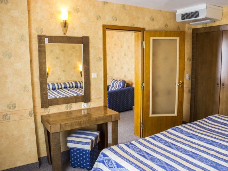 - Junior suita (JSX1), junior suita, v hlavnej budove, bočný výhľad na more, výhľad na mesto, cca 40 m², posledná kompletná rekonštrukcia v roku 2008, posledná čiastočná rekonštrukcia v roku 2017, celkový počet izieb v tomto type izby: 2, dispozičné riešenie nasledovne: pozostáva z 2 izieb, ktoré sú opticky oddelené posuvnými dverami , 1 manželská posteľ (200x200 cm), 1 rozkladacia pohovka, 1 prístelka, detská postieľka: cca 3 EUR na deň, moskytiéra, klimatizácia: zdarma , závislé od počasia, centrálne ovládané, podlaha: koberec, pohovka, písací stôl, kávovar/čajník, minibar : za poplatok, telefón, Internet: WLAN/WiFi: bez poplatku, TV: v obývačke, káblová TV, sprcha, vaňa, WC, fén, kozmetické zrkadlo, balkón: s posedením