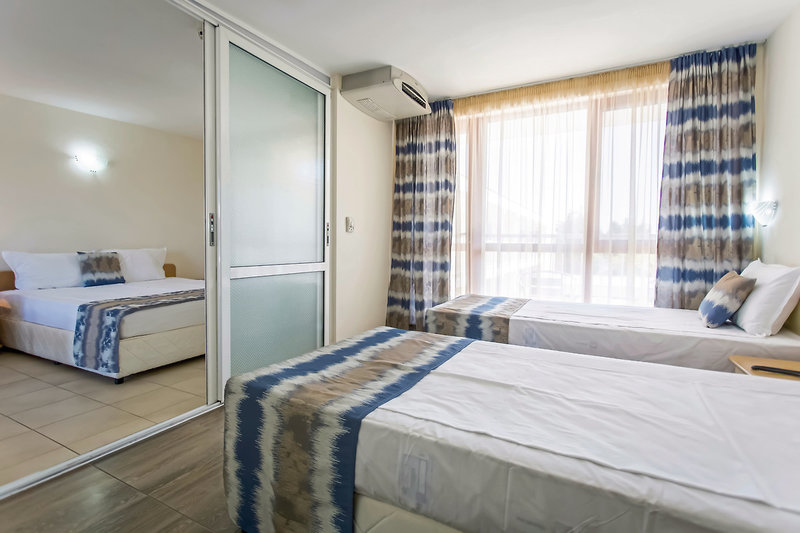 - 31-35 qm, Familien, Nichtraucher, 1 separates Schlafzimmer, kombinierter Wohn-/Schlafraum, Couch, 2 Einzelbetten, 1 Doppelbett, 1 Bad, Dusche, WC, Haartrockner, Minibar kostenpflichtig, (Auffüllung auf Anfrage), 1 TV (Sat-TV, deutschsprachiges Programm, landestypisches Programm), WLAN, Balkon (möbliert), Bettwäschewechsel, Handtuchwechsel